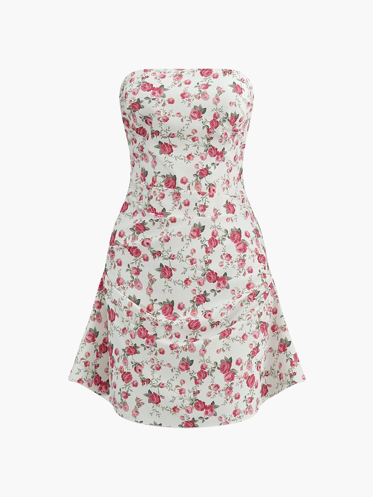 Gül Bahçesi Çiçekli Tüp Kısa Elbise