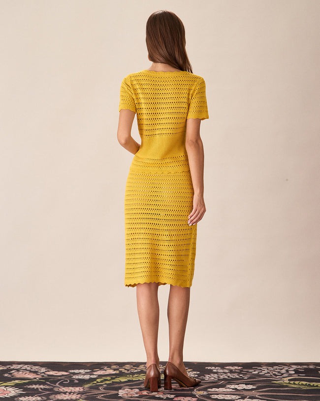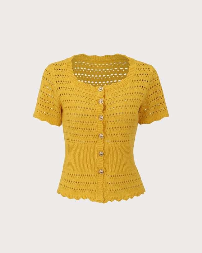 Sarı Tığ İşi Tek Düğmeli Hırka