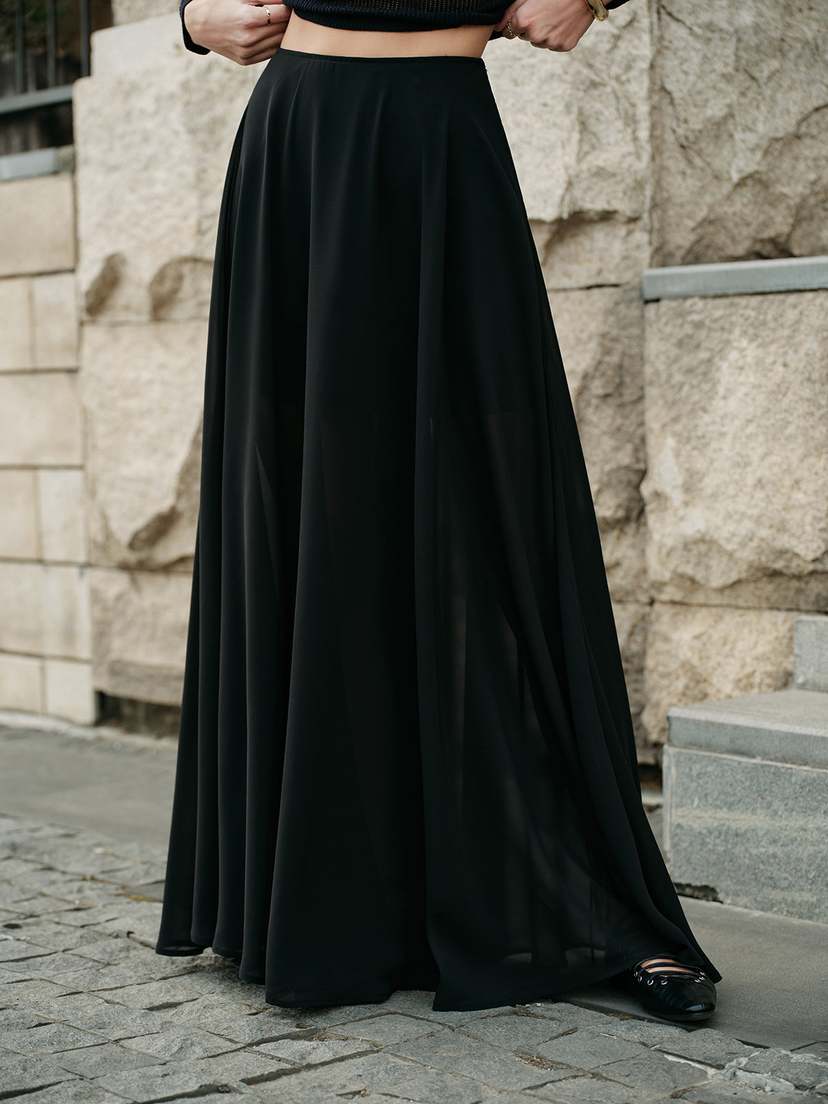Şık Yarım Şeffaf Şifon Etek