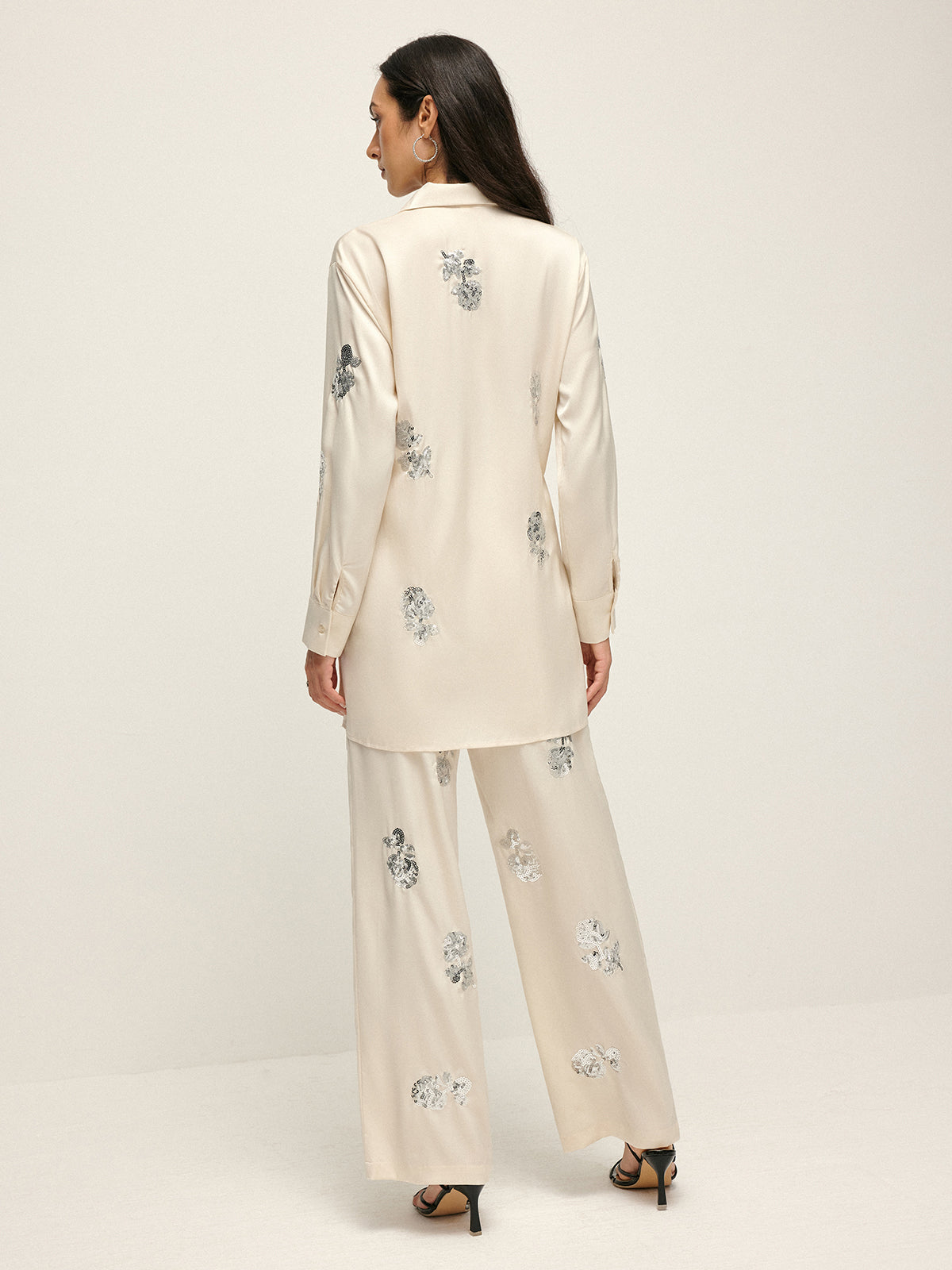 Sıralı Dekor Saten Yüksek Bel Pantolon