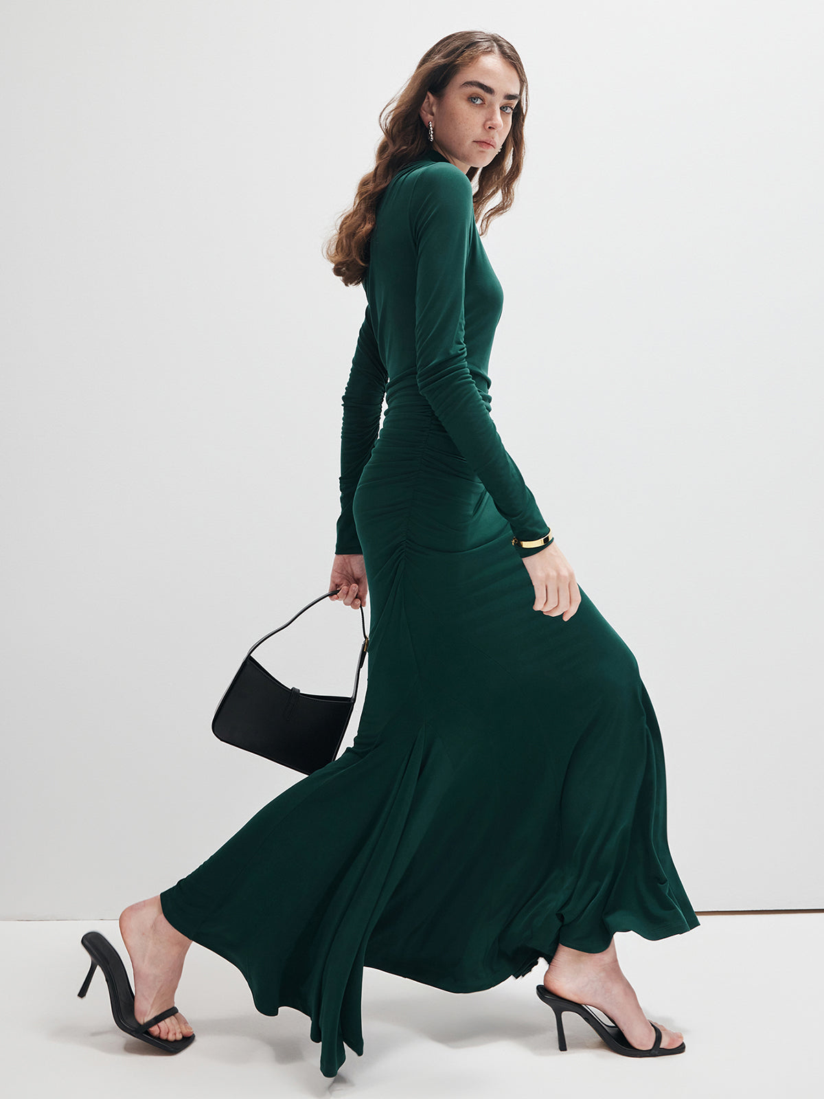 Elbiselerimiz, çağdaş tasarım unsurlarıyla klasik güzellik kavramını yeniden tanımlıyor. Zarif, vücuda oturan siluet, zarif bir görünüm yaratarak sizi gecenin parlayan yıldızı yapar. İster bir galaya, ister bir düğüne veya resmi bir akşam yemeğine katılın, bu elbise zahmetsizce göz alıcı bir görünüm için tercihiniz olacak.