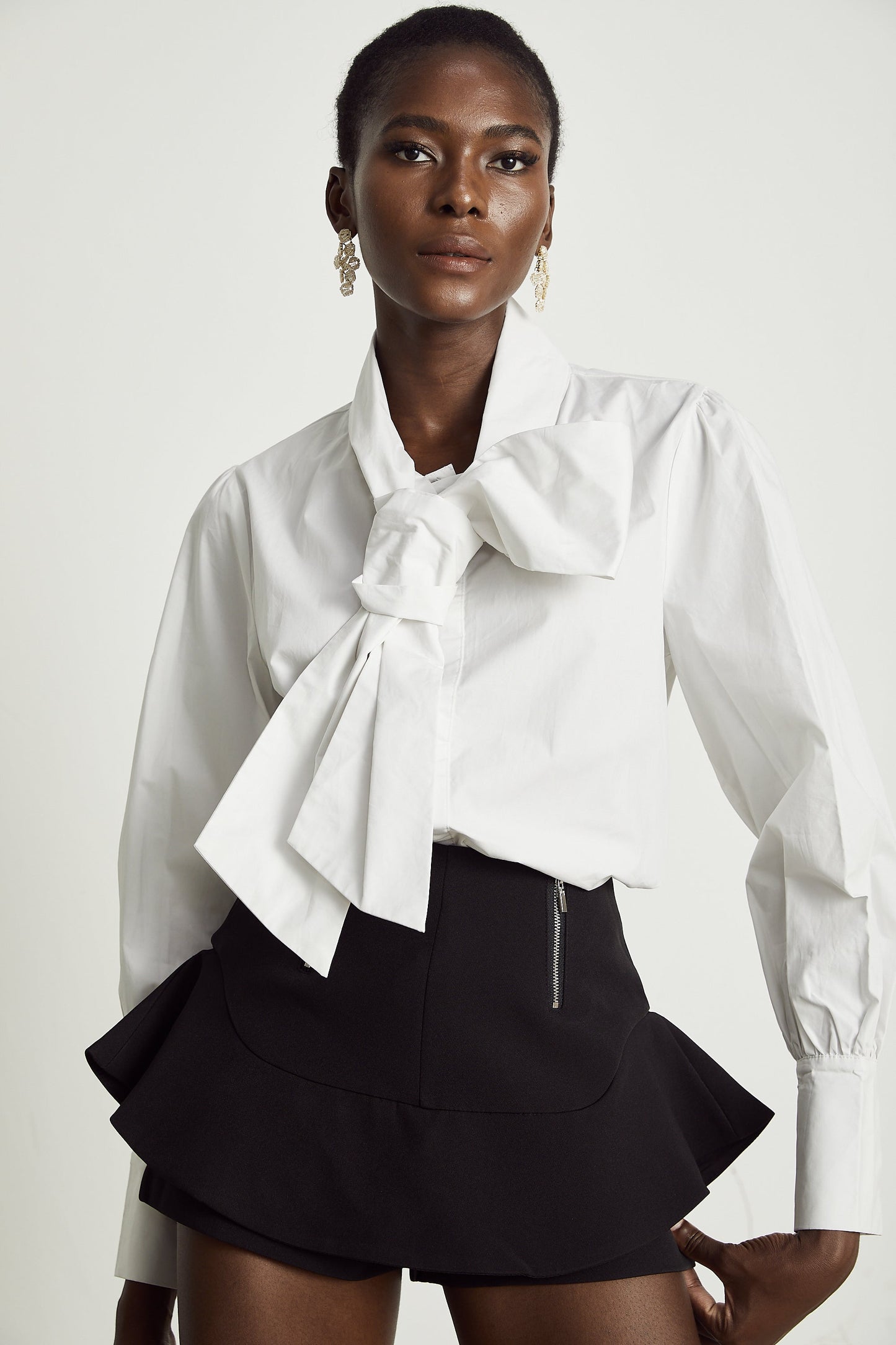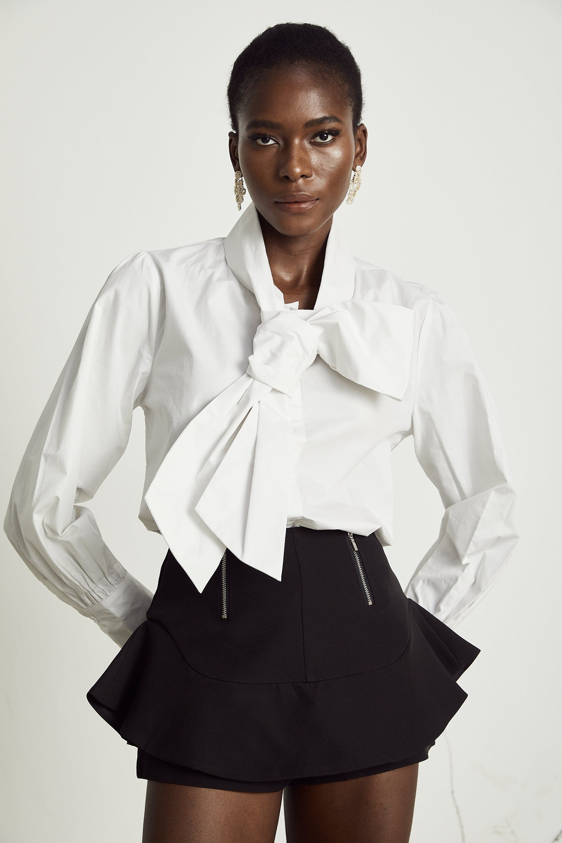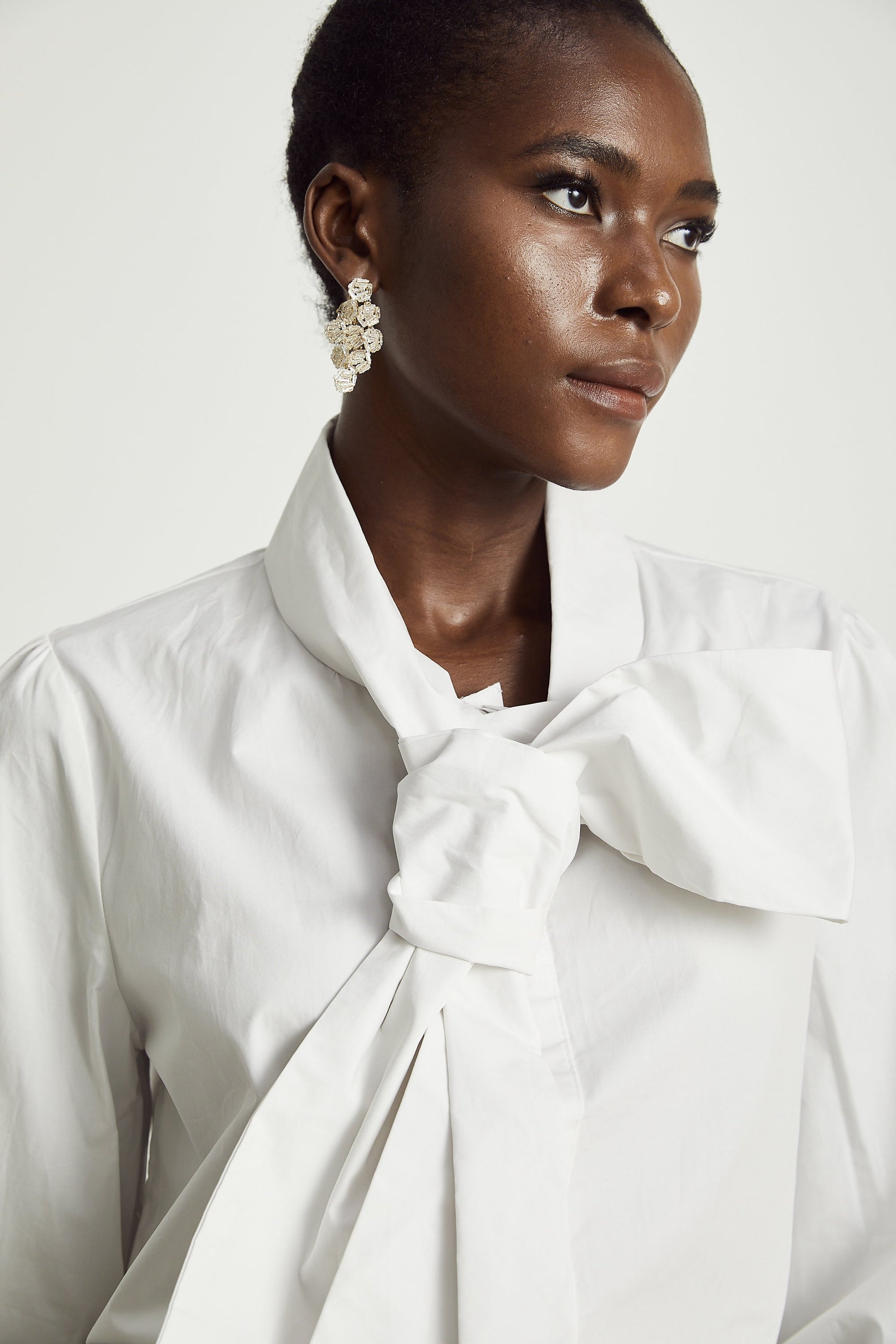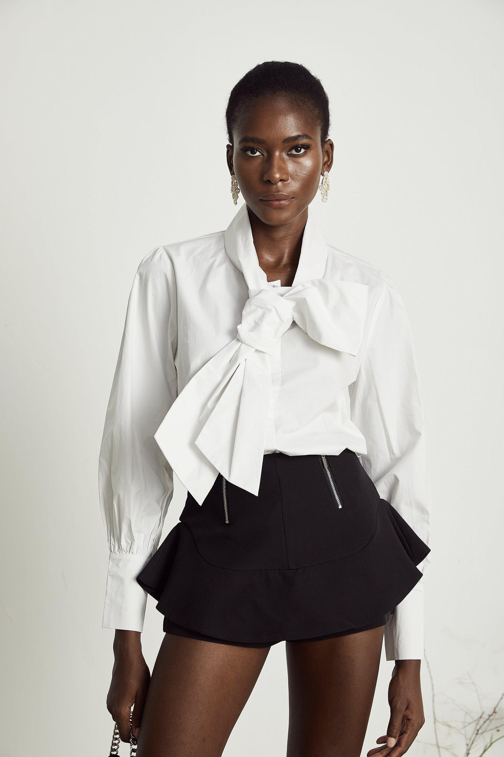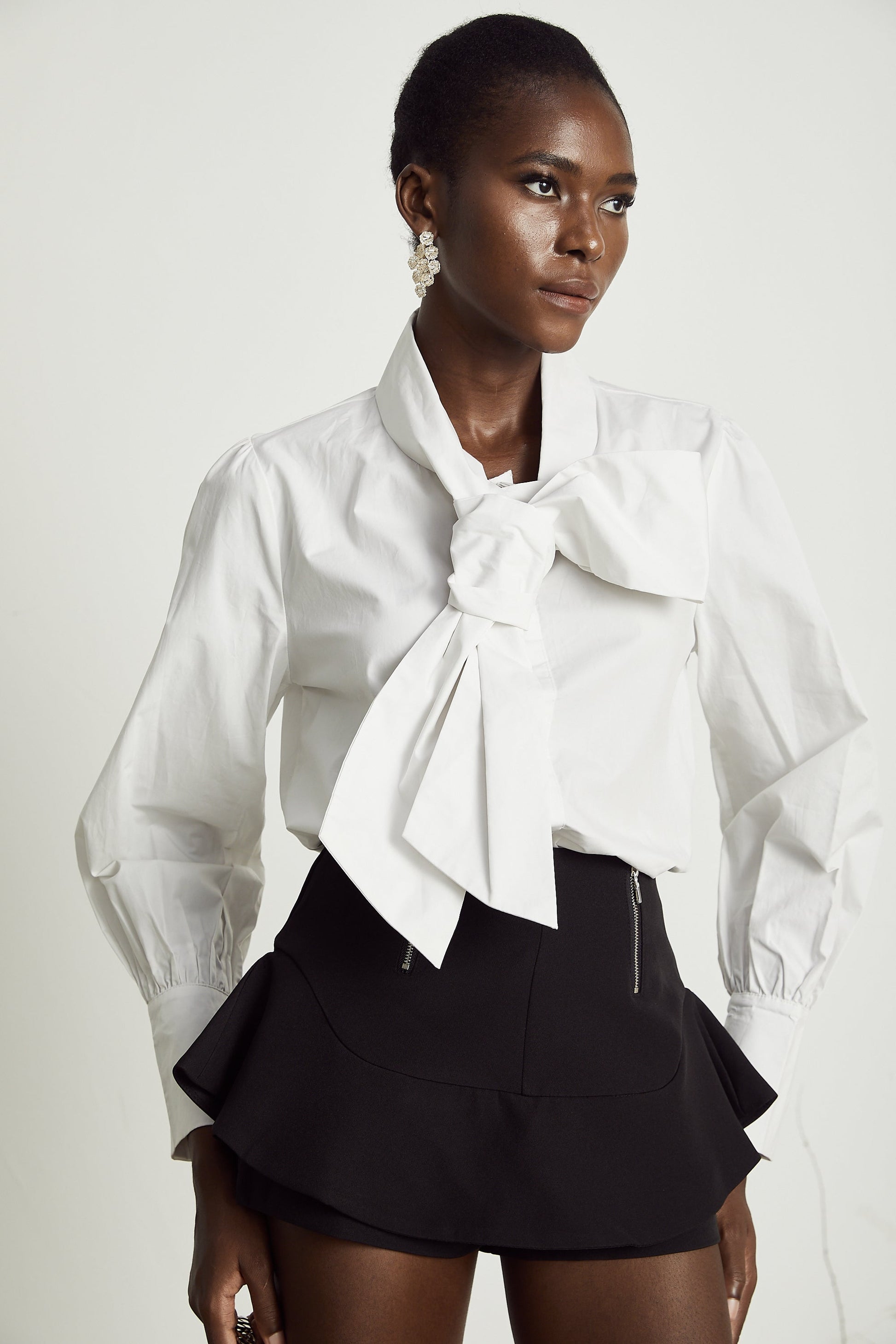 Solène Beyaz Önden Bağlamalı Pamuklu Gömlek