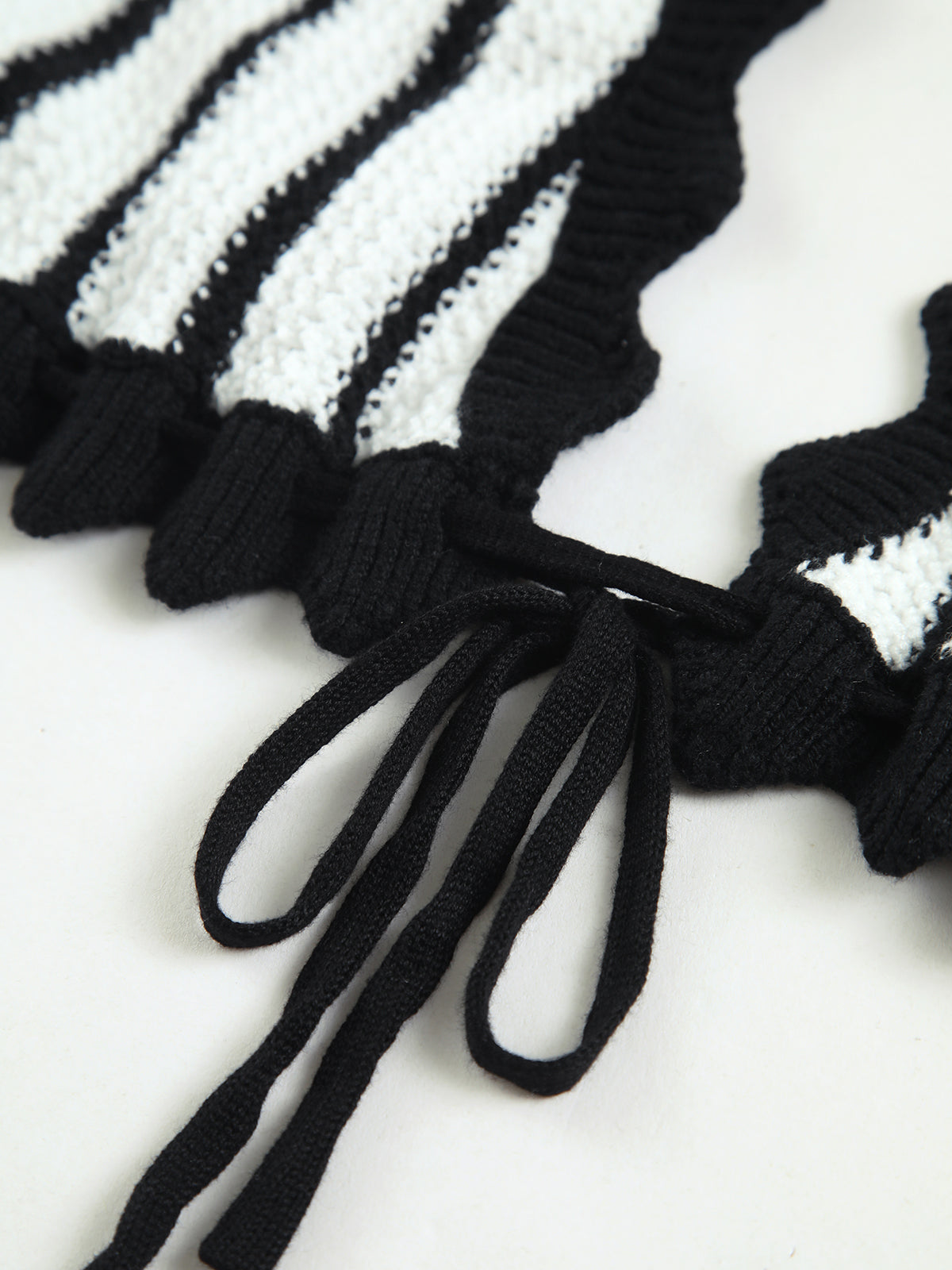 Çizgili Düğümlü Sırtı Açık Etek Takım