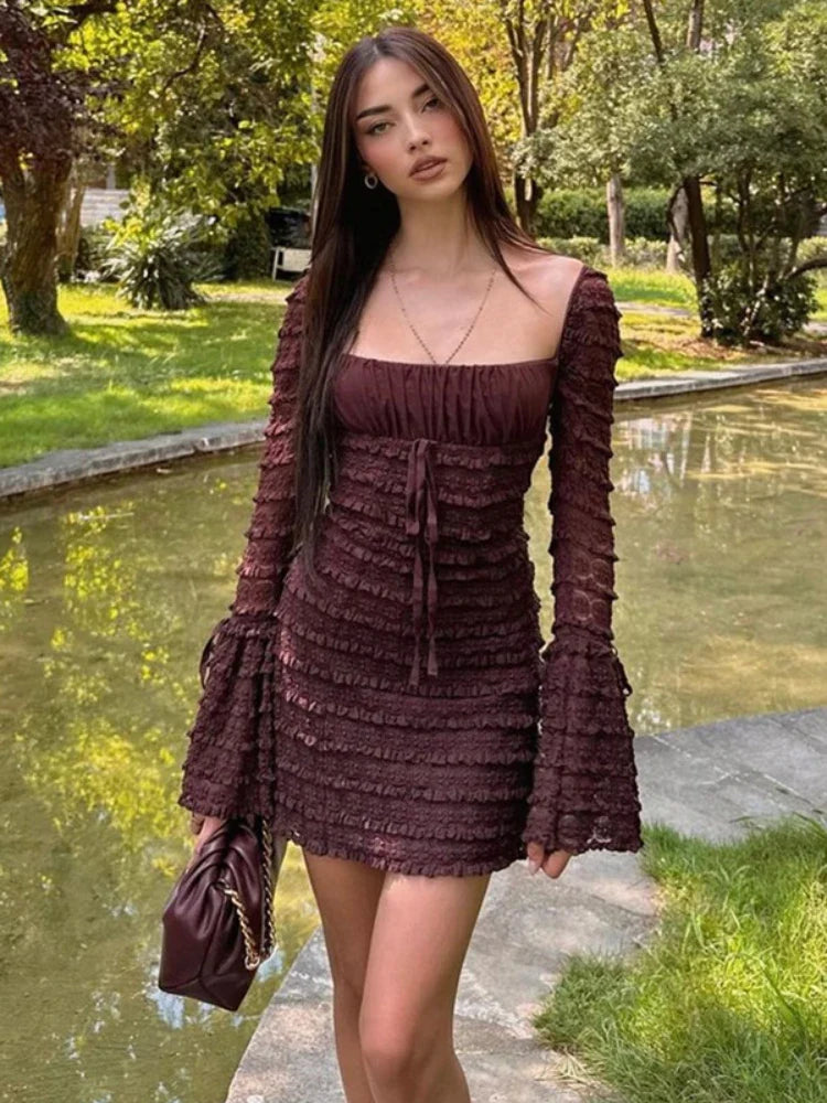 33% İndirimKırmızı Pilili Fırfırlı Mini Elbise