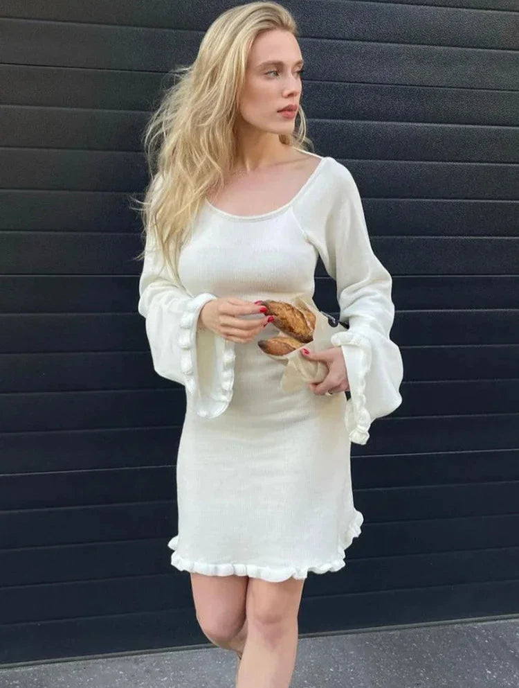 Sırt Detay Örme İspanyol Kol Mini Elbise