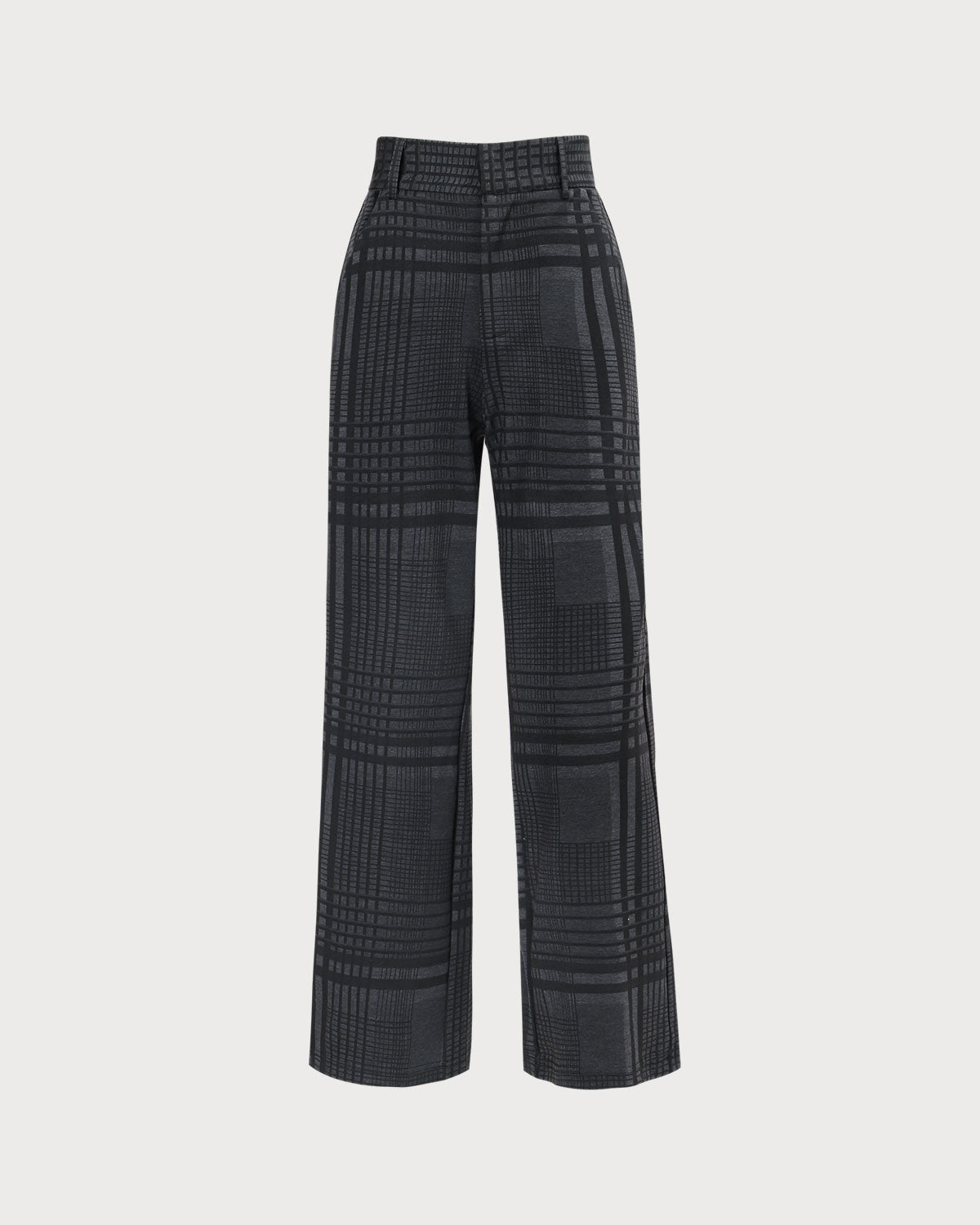 Gri Yüksek Bel Ekose Geniş Paça Pantolon