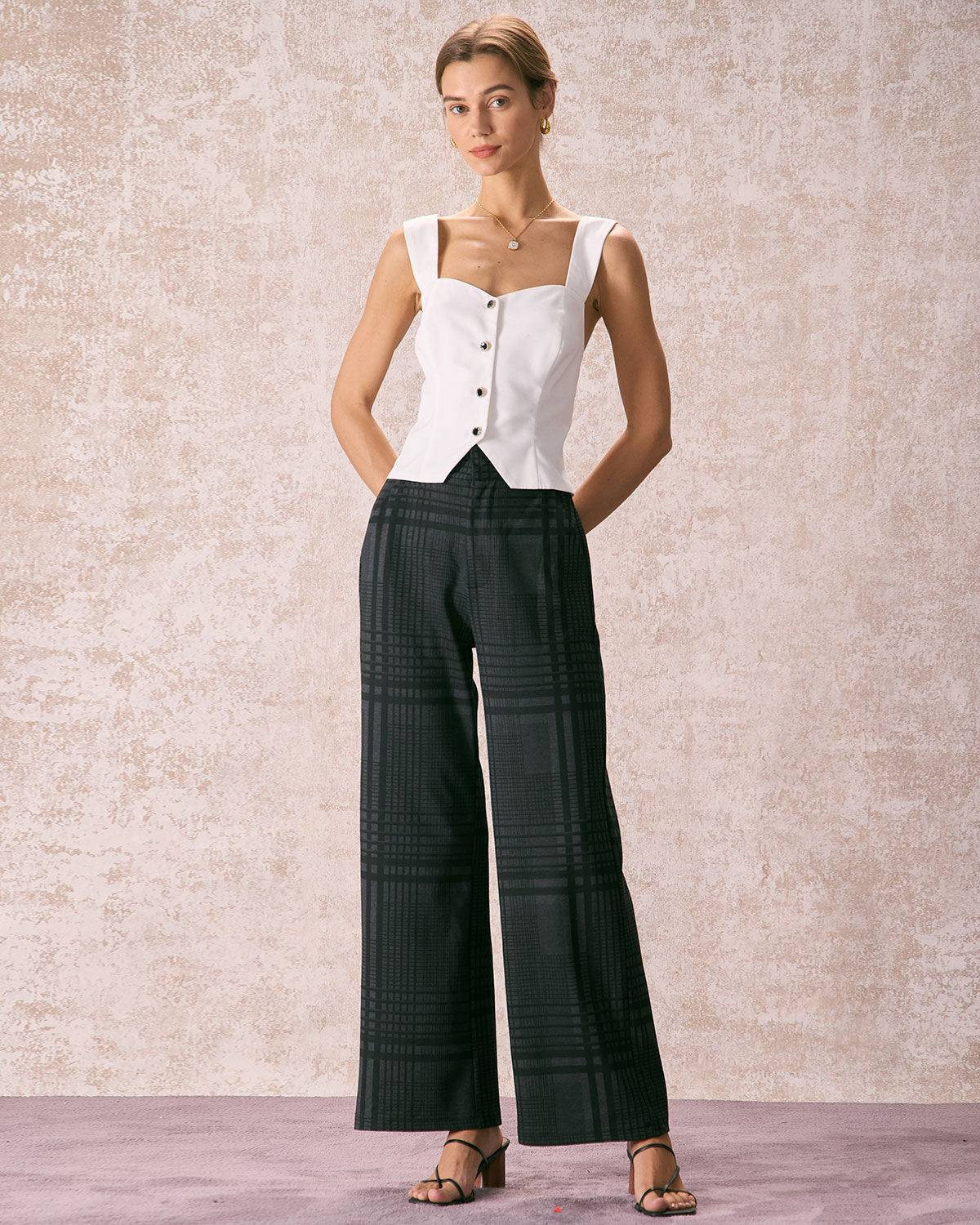 Açıklama: Geniş Paça Pantolon, feminen tarzı modern konforla birleştiren çok yönlü bir parçadır. Cepler, fermuar kapanış ve ekose tasarım, elbiseye şıklık katarken çeşitli üstlerle mükemmel bir uyum sağlar. Geniş paça ve yüksek bel tasarımı, klasik bir siluet oluştururken modern bir dokunuş ekler; her türlü etkinlik için idealdir. İster topuklu ayakkabılarla şık bir görünüm oluşturun, ister spor ayakkabılarla rahat bir stil yakalayın; bu pantolon, gardırobunuza eklenmesi gereken bir parçadır.