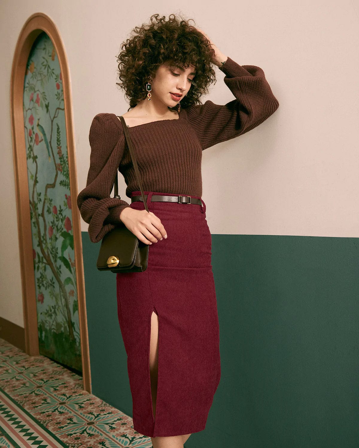 Açıklama: Yan yırtmaç detayıyla bu etek, ekstra şekil ve rahatlık sunar. Yan fermuarlı yüksek belli bir midi etektir. Yarı resmi bir görünüm elde etmek ve aynı anda rahat hissetmek için uygundur.
