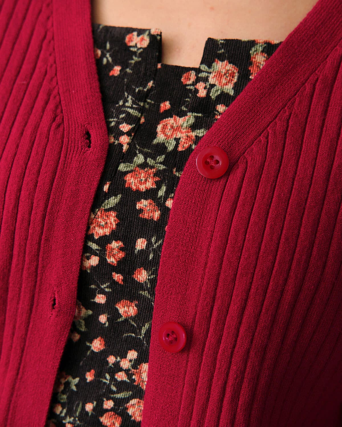 Açıklama: Kırmızı renk, kadınların ten rengini güzel bir şekilde ön plana çıkarır. Nervürlü kumaşıyla bu hırka görsel olarak dokulu bir görünüm sunar. Ayrıca, V yaka ve tek sıra düğmeli tasarımı basit ve rahattır, dar kesimi ise kadınların figürünü güzel bir şekilde sergiler. Askılı bir elbise ile kombinlemeyi deneyin.