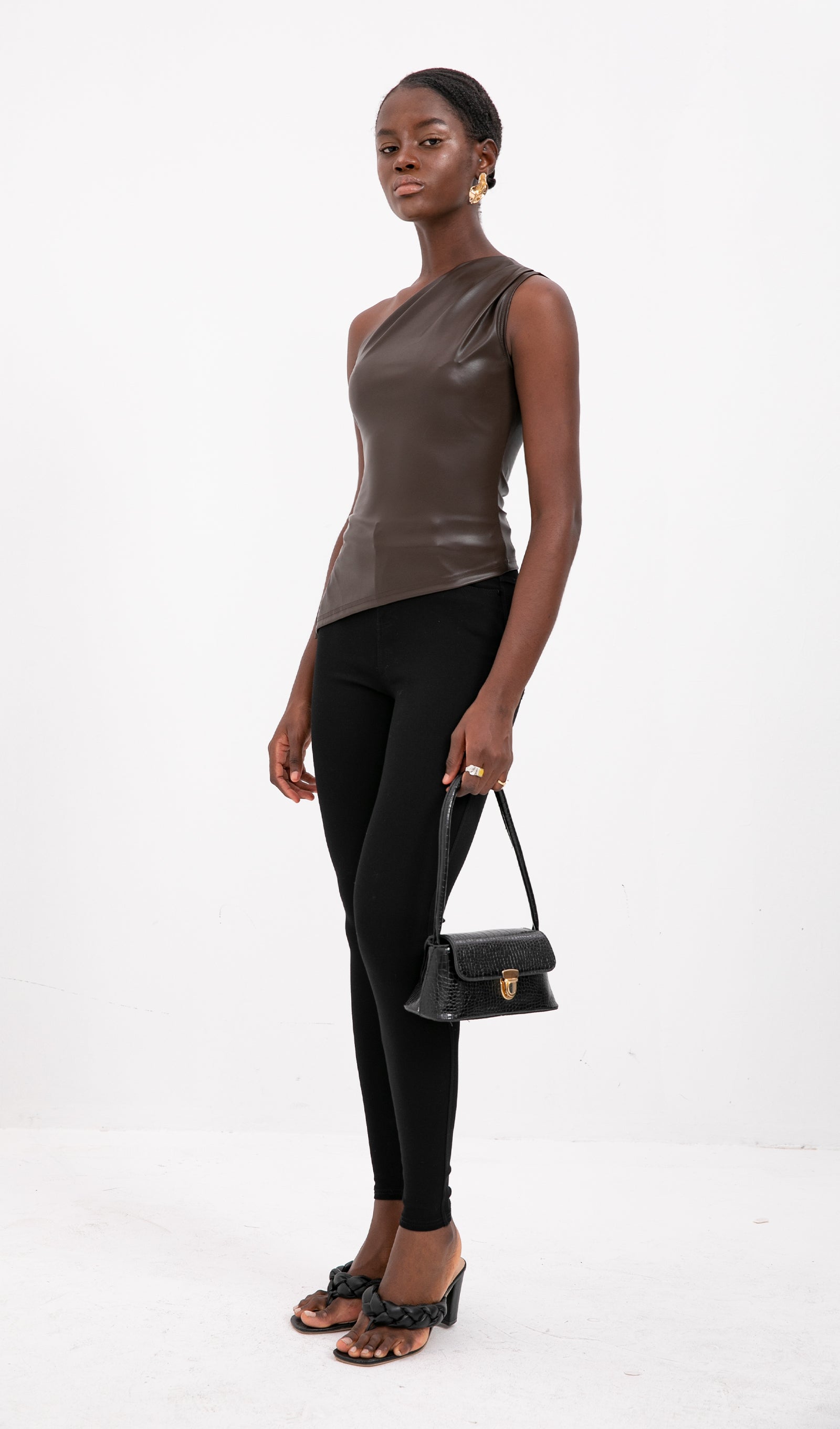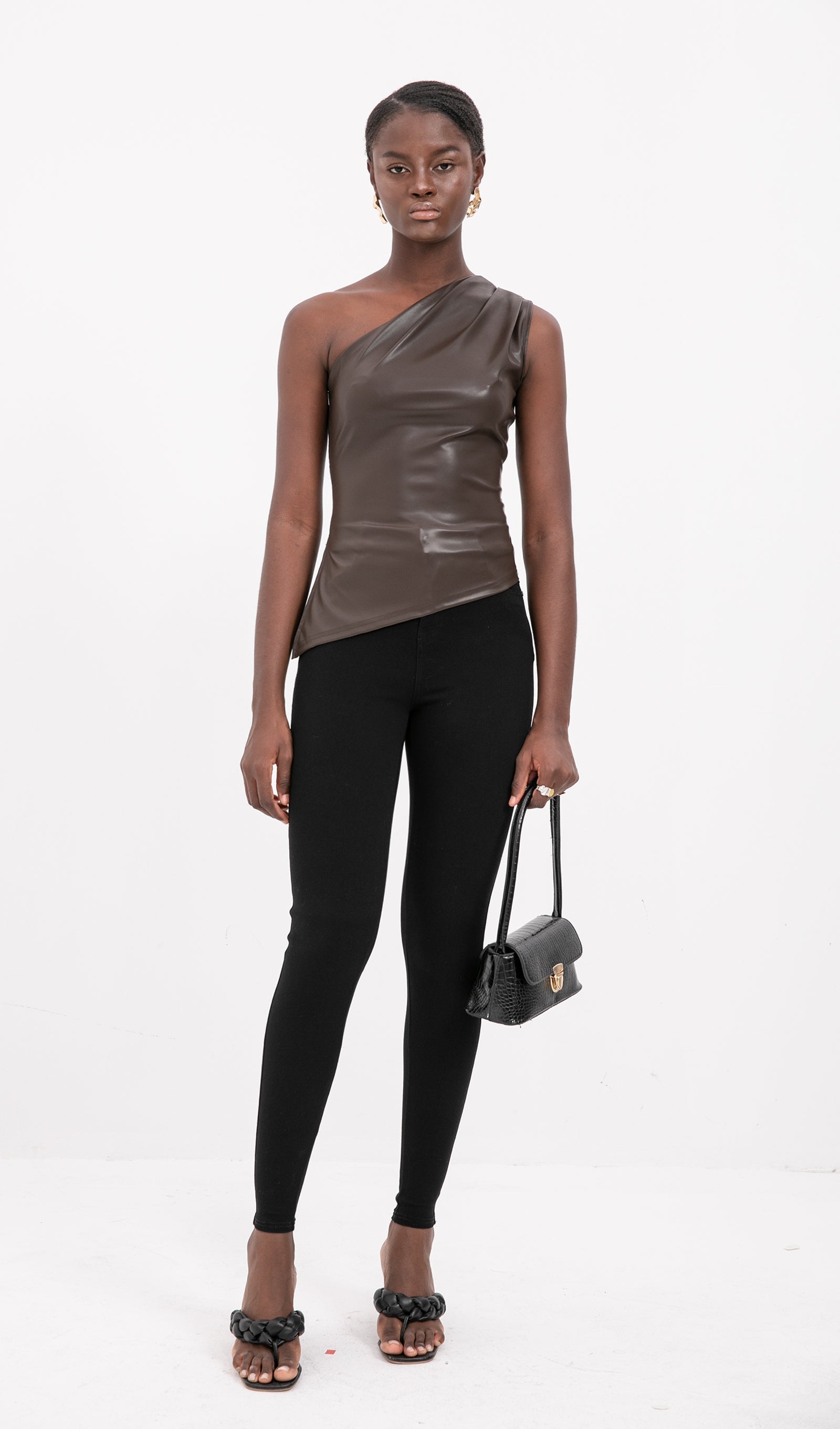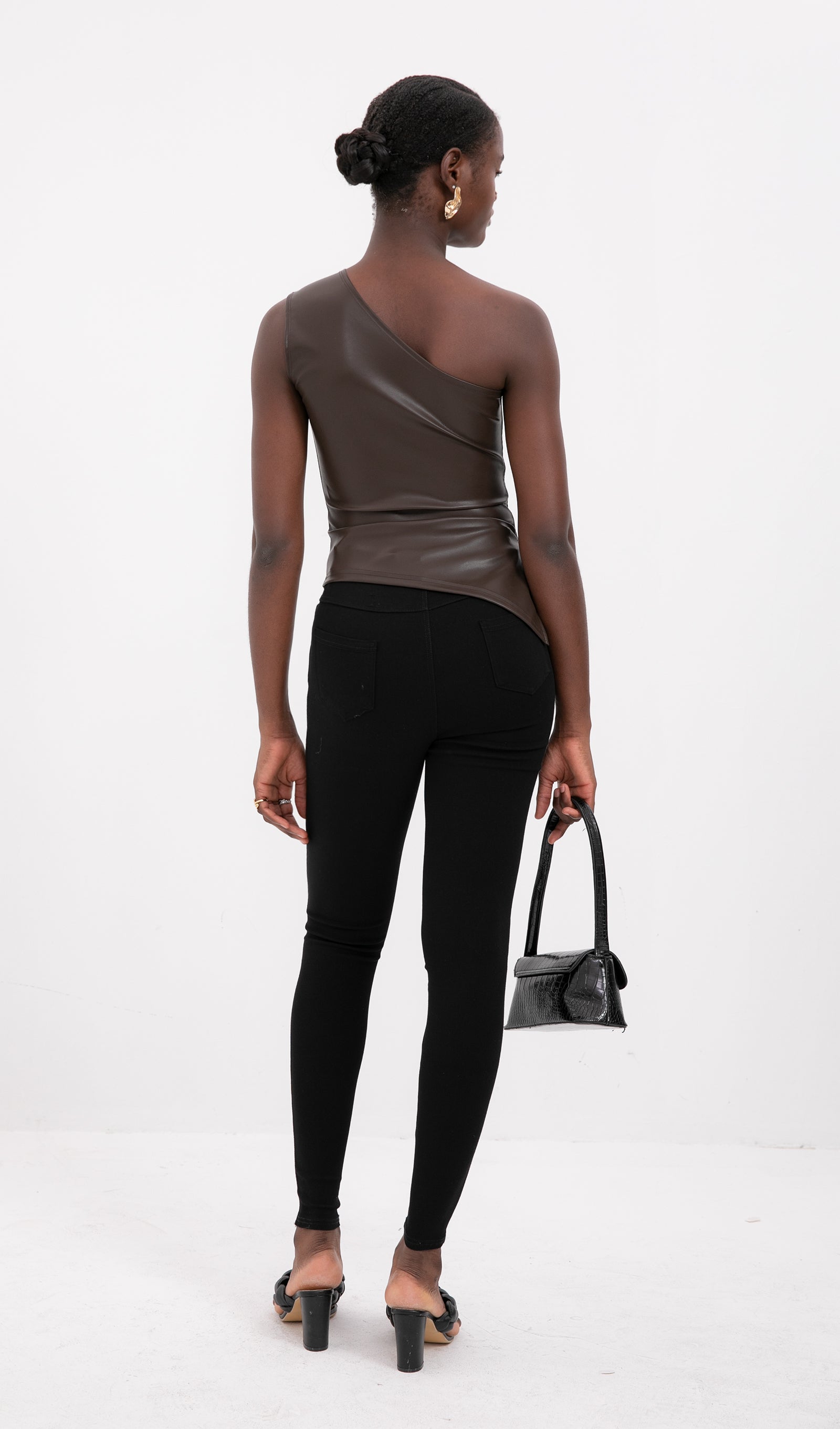 Sliess Düz Deri Asimetrik Üst-Bronz Kahve