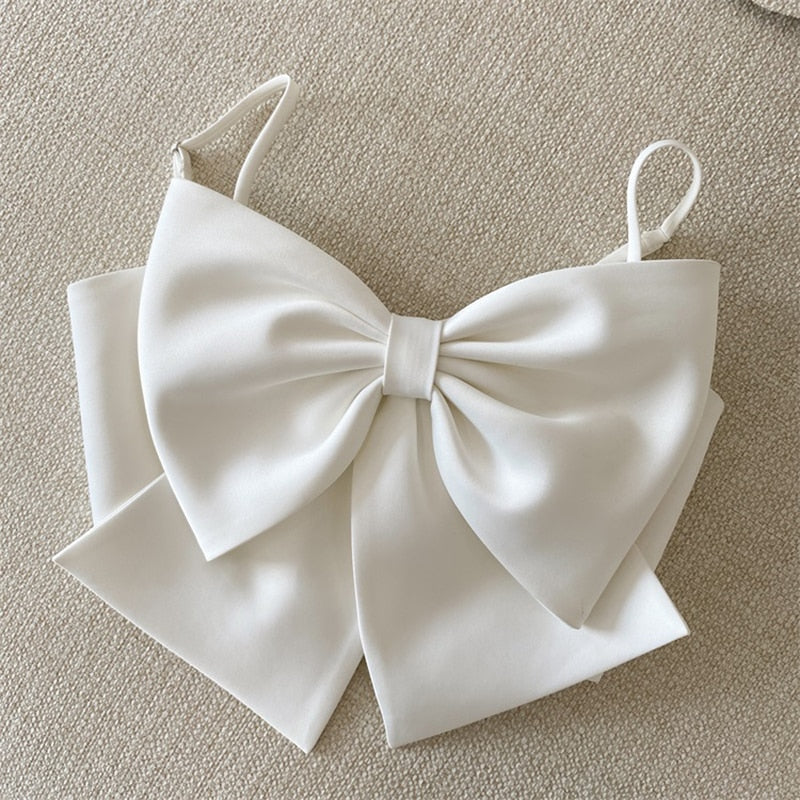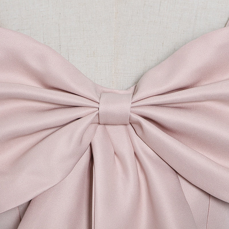 Kontrast Büstiyerli ve Fiyonklu Zarif Omuzları Açık Mini Elbise