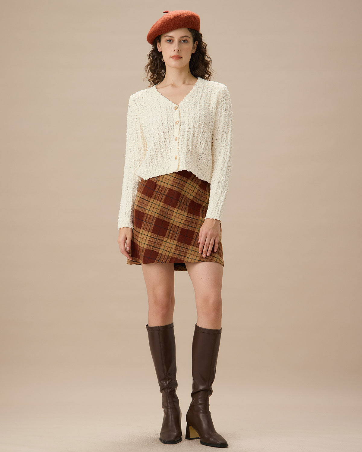 Beyaz V Yaka Tek Sıra Düğmeli Hırka