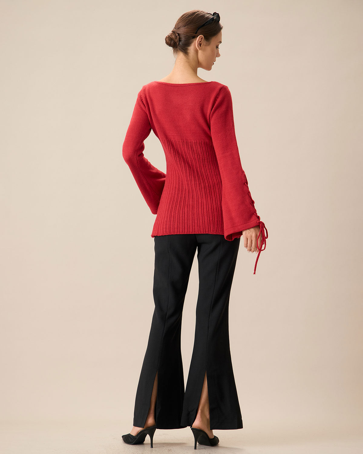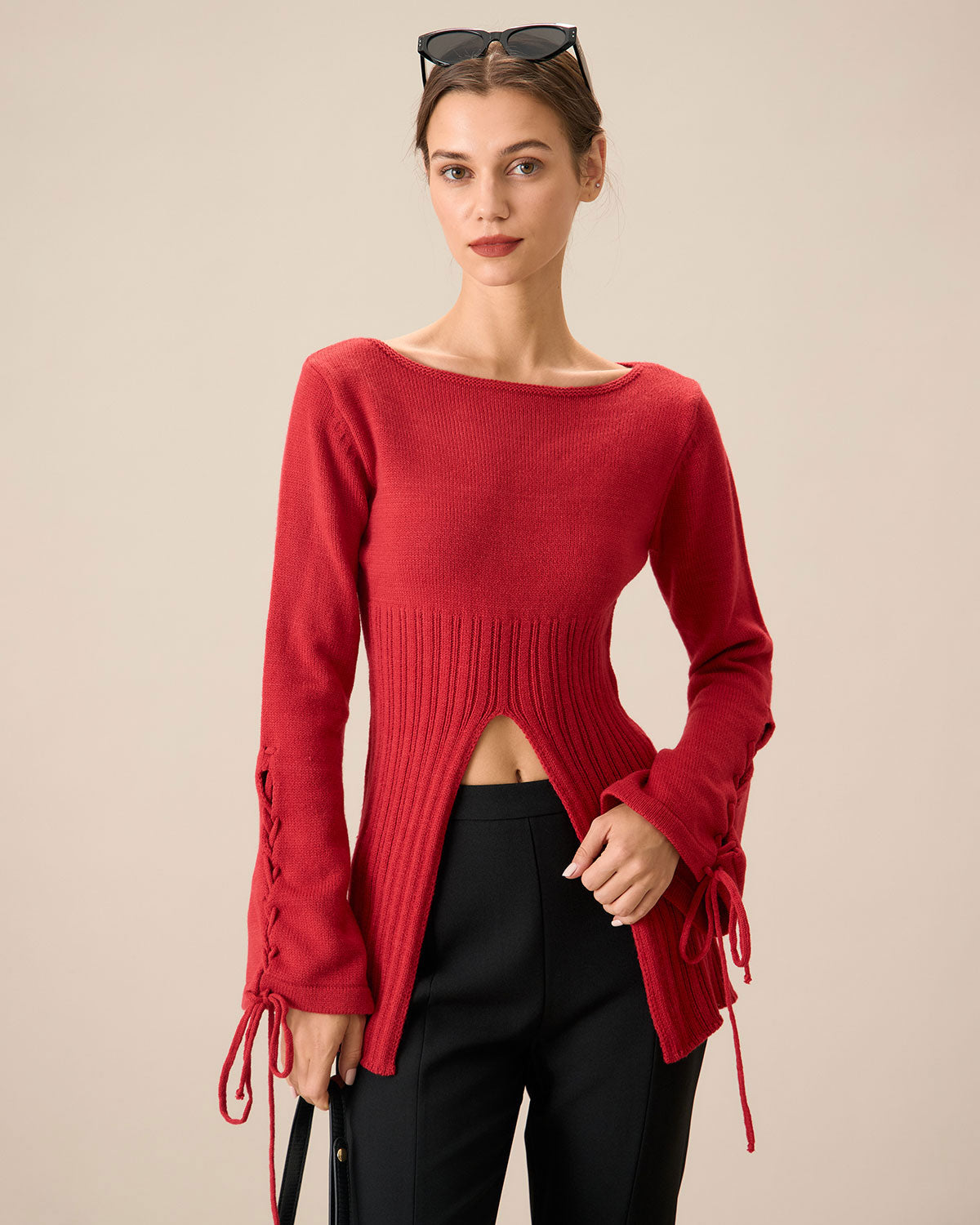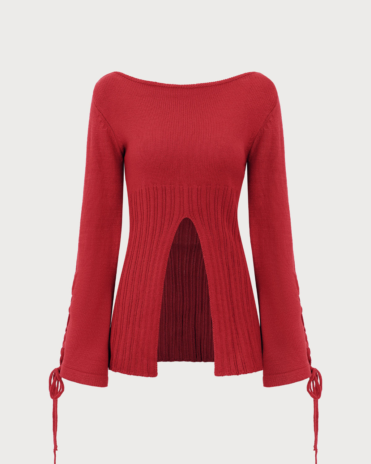 Kırmızı Fırfırlı Kol Yırtmaçlı Kazak