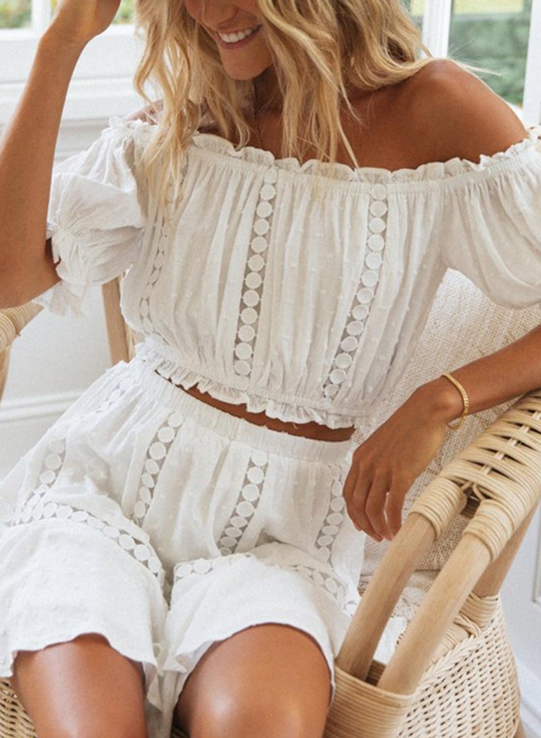 Dantel Dikişli Fırfırlı İki Parçalı Mini Elbise