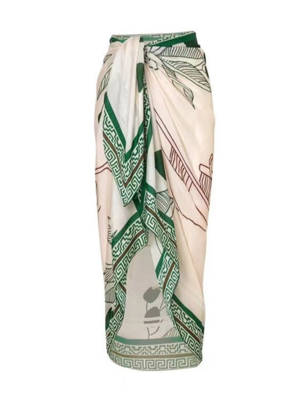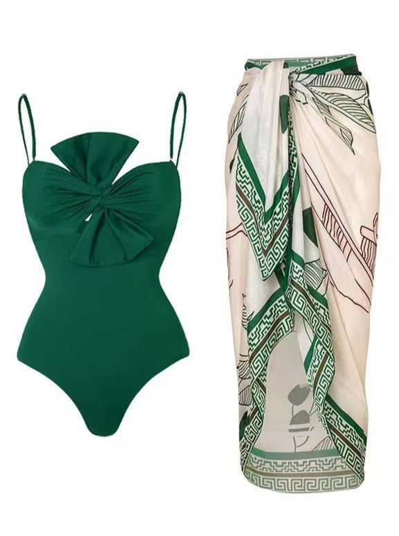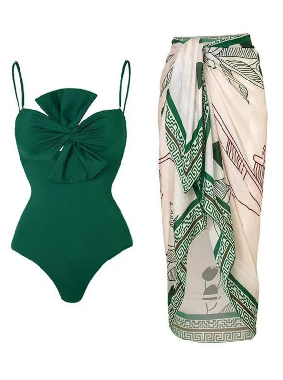 İki Parçalı Kurdeleli Mayo ve Tropikal Baskılı Etek