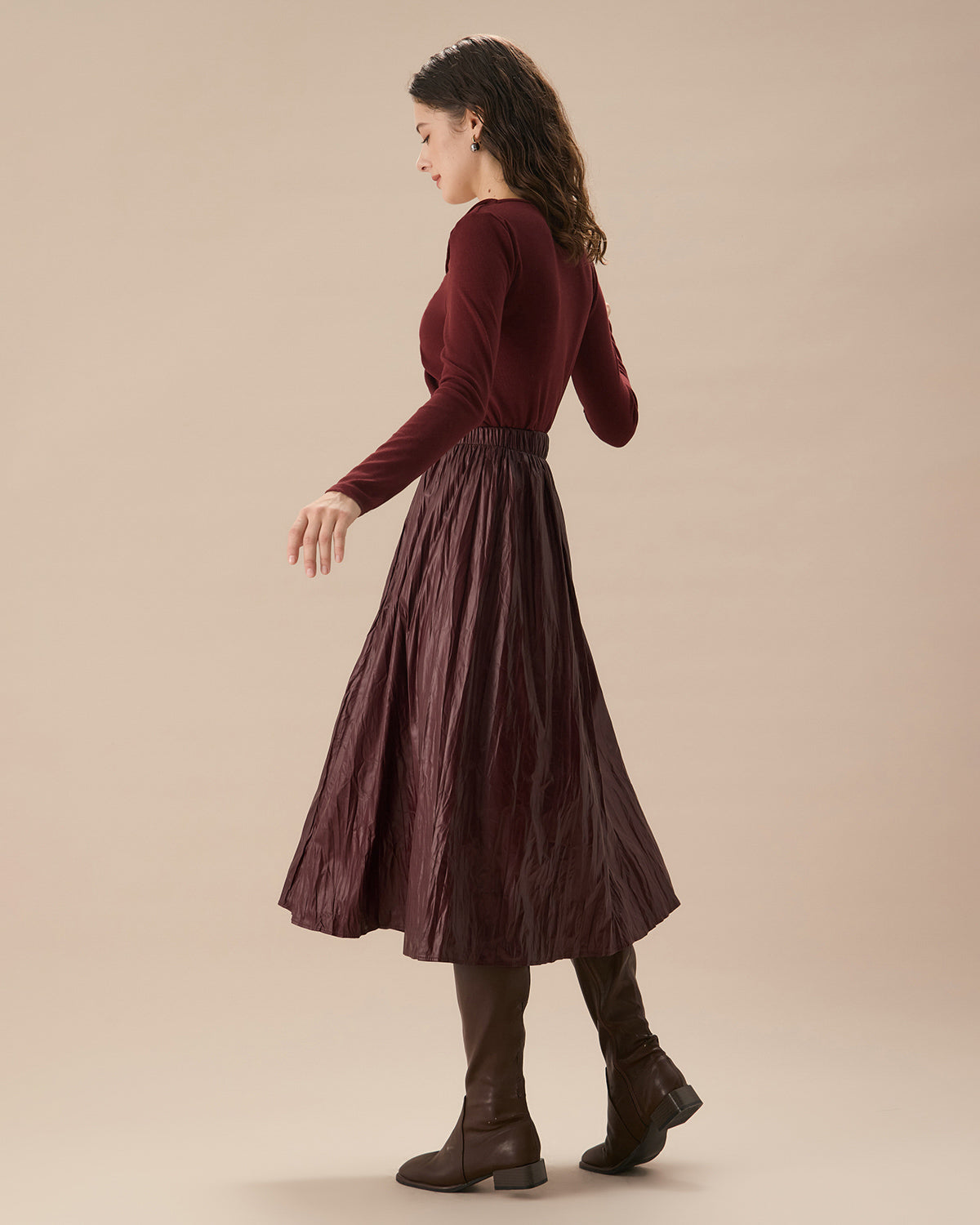 Açıklama: Esnek lastikli beli ve şık büzgü detaylarıyla bu midi etek, vücuda oturan feminen bir siluet yaratır. Zengin şarap kırmızısı rengi cesur bir dokunuş katarak hem gündelik hem de şık etkinlikler için mükemmel bir tercih yapar.