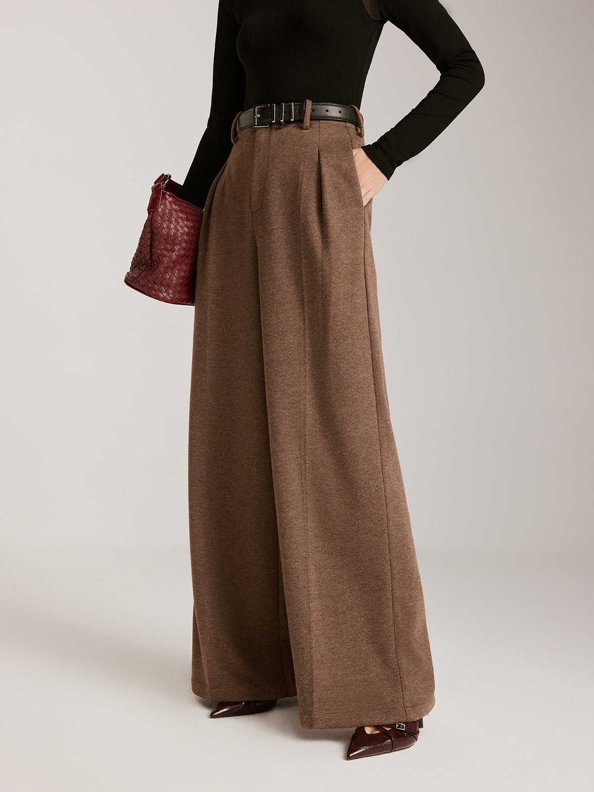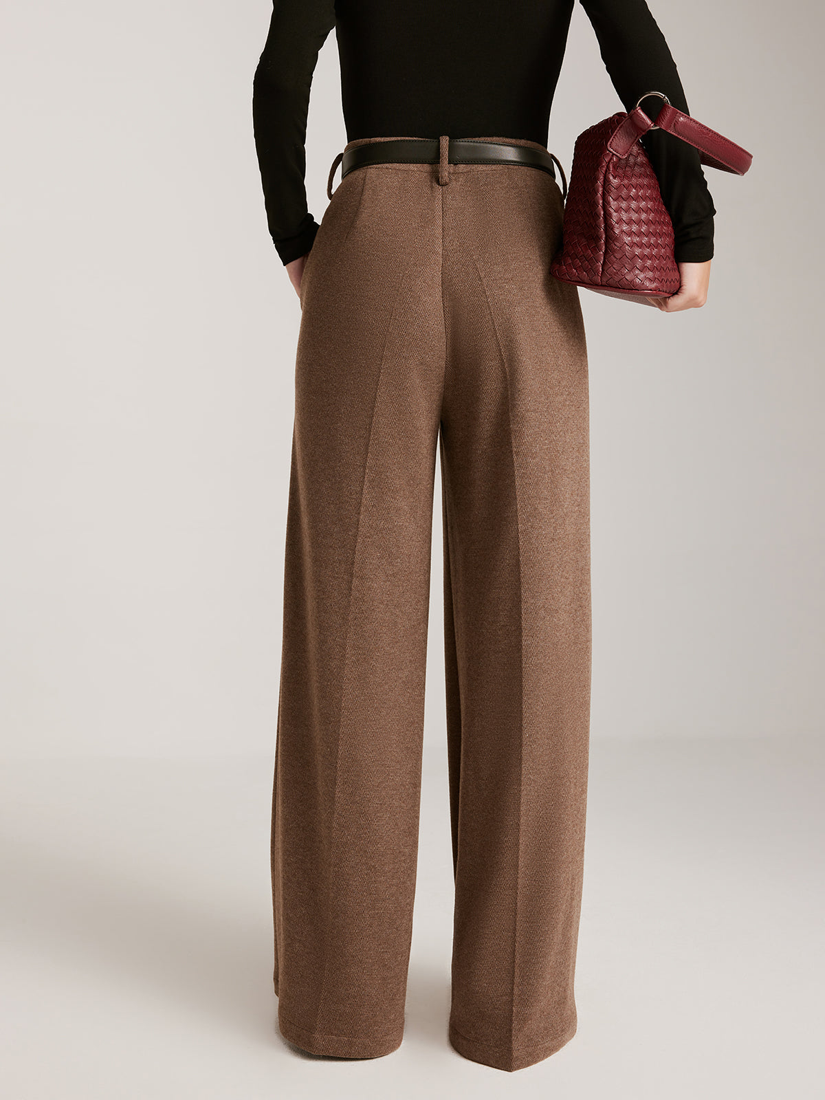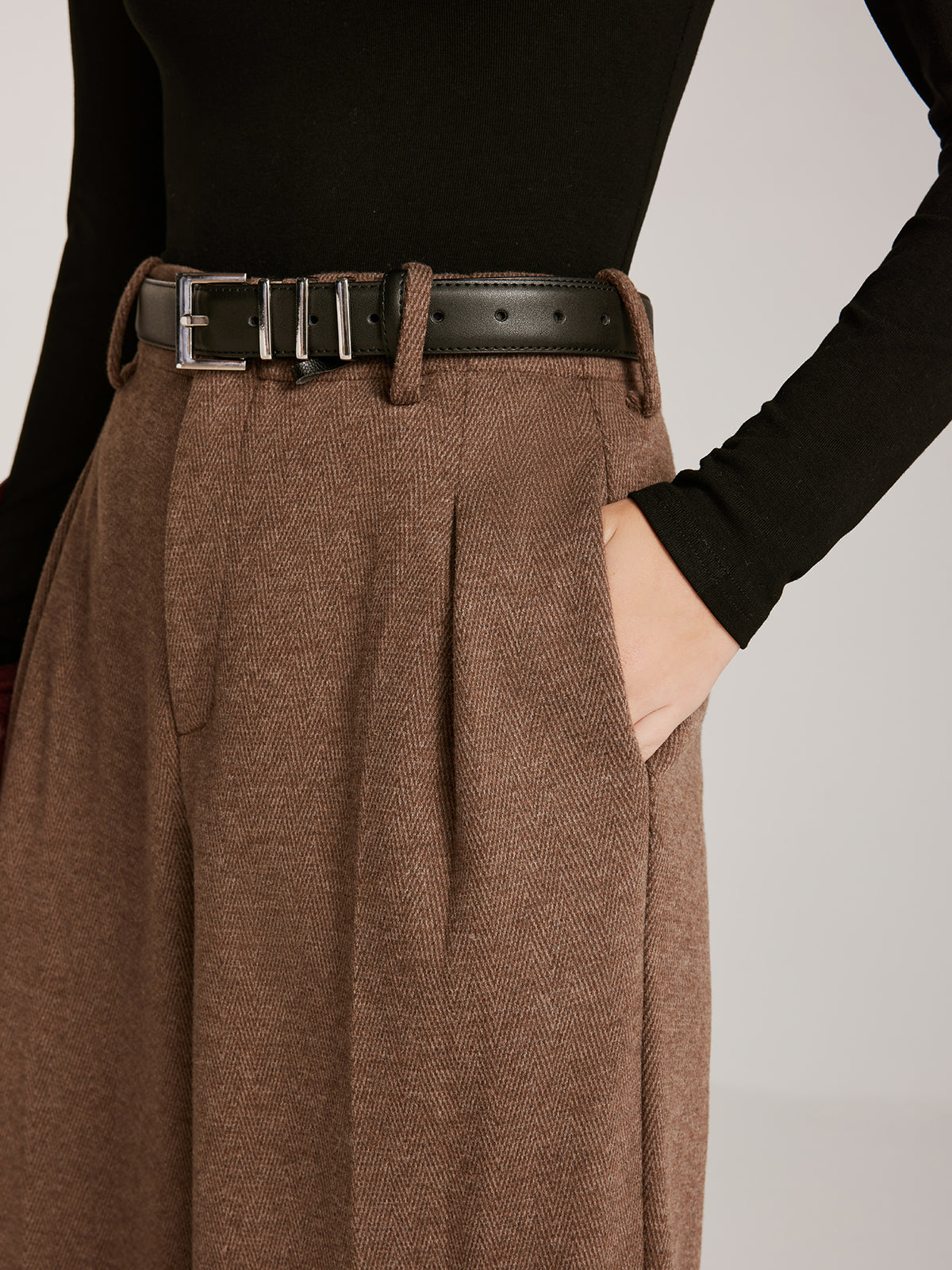 Kemer Olmadan Yün Karışımlı Çizgili Geniş Paça Pantolon