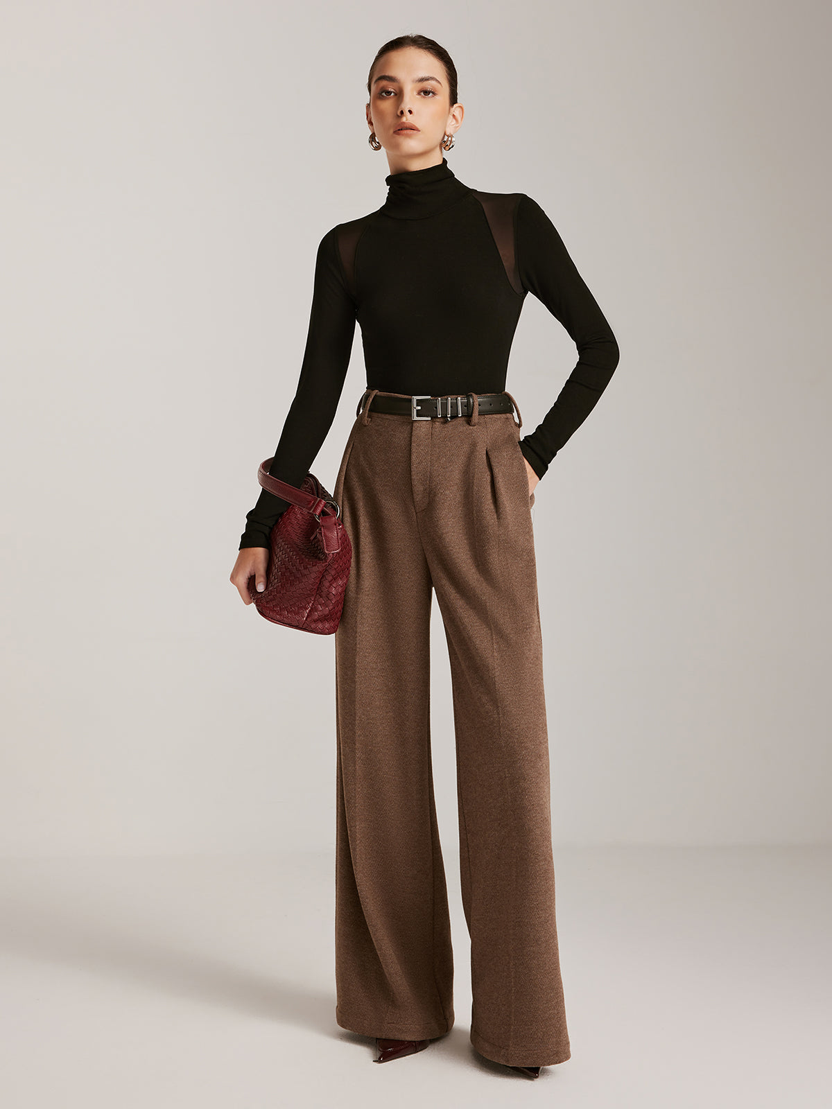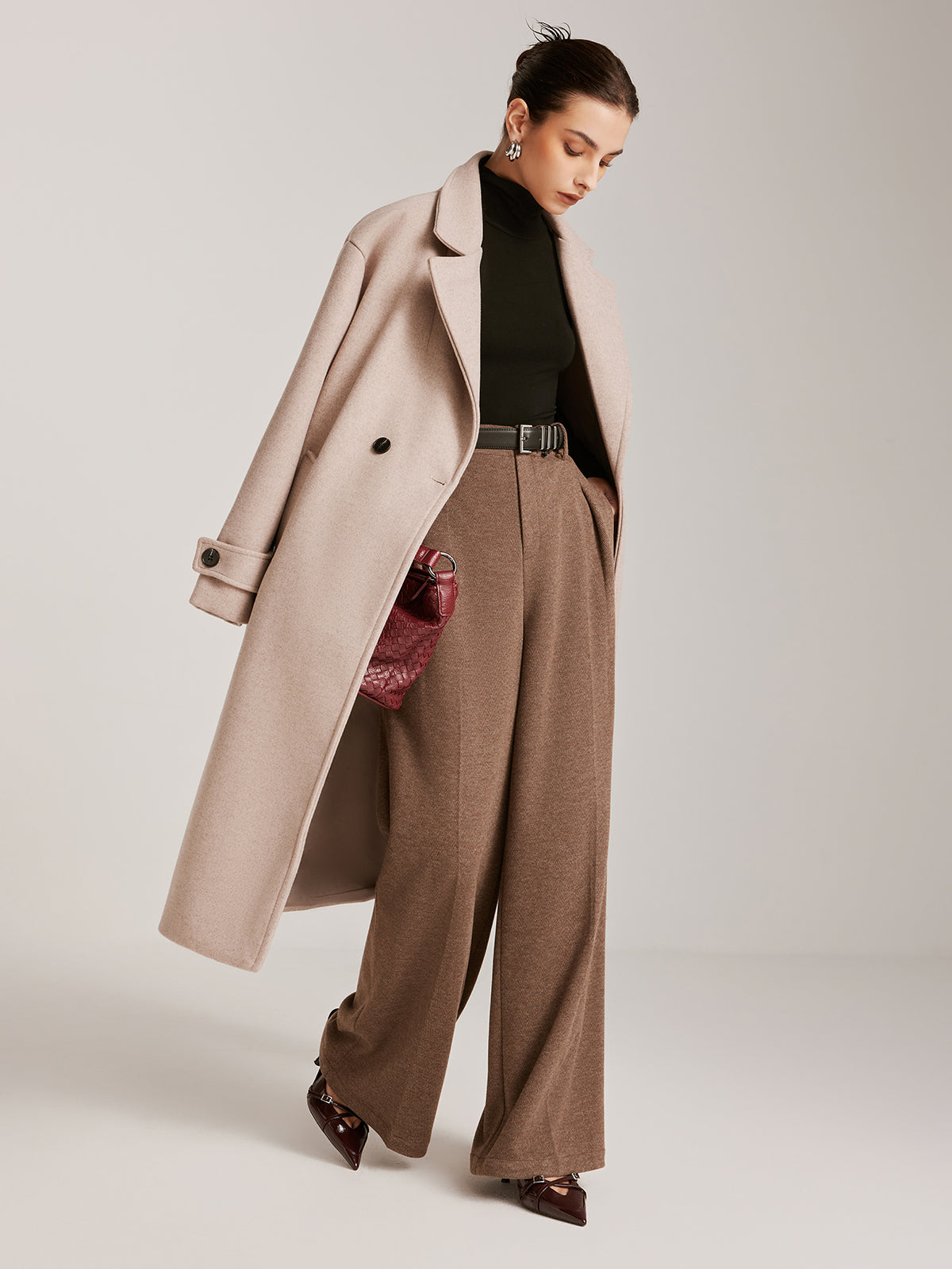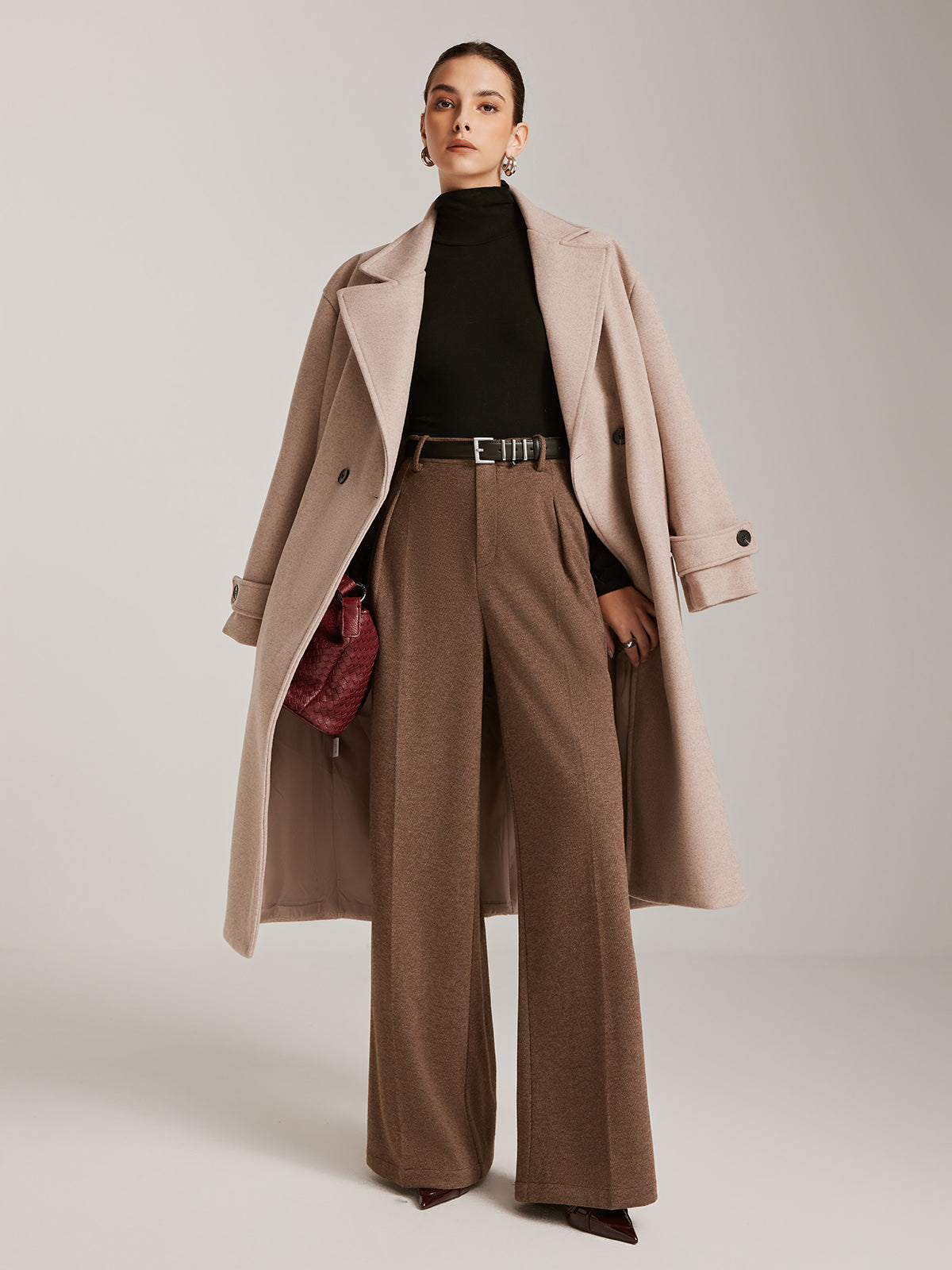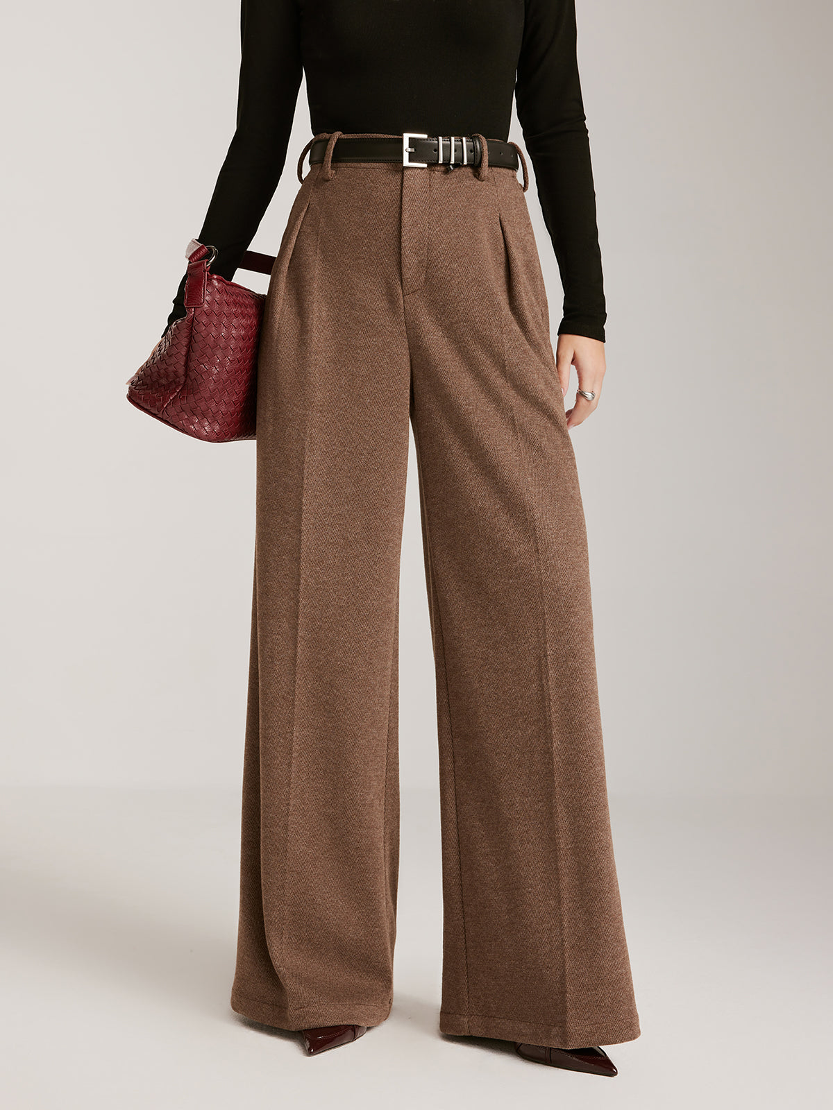 Kemer Olmadan Yün Karışımlı Çizgili Geniş Paça Pantolon