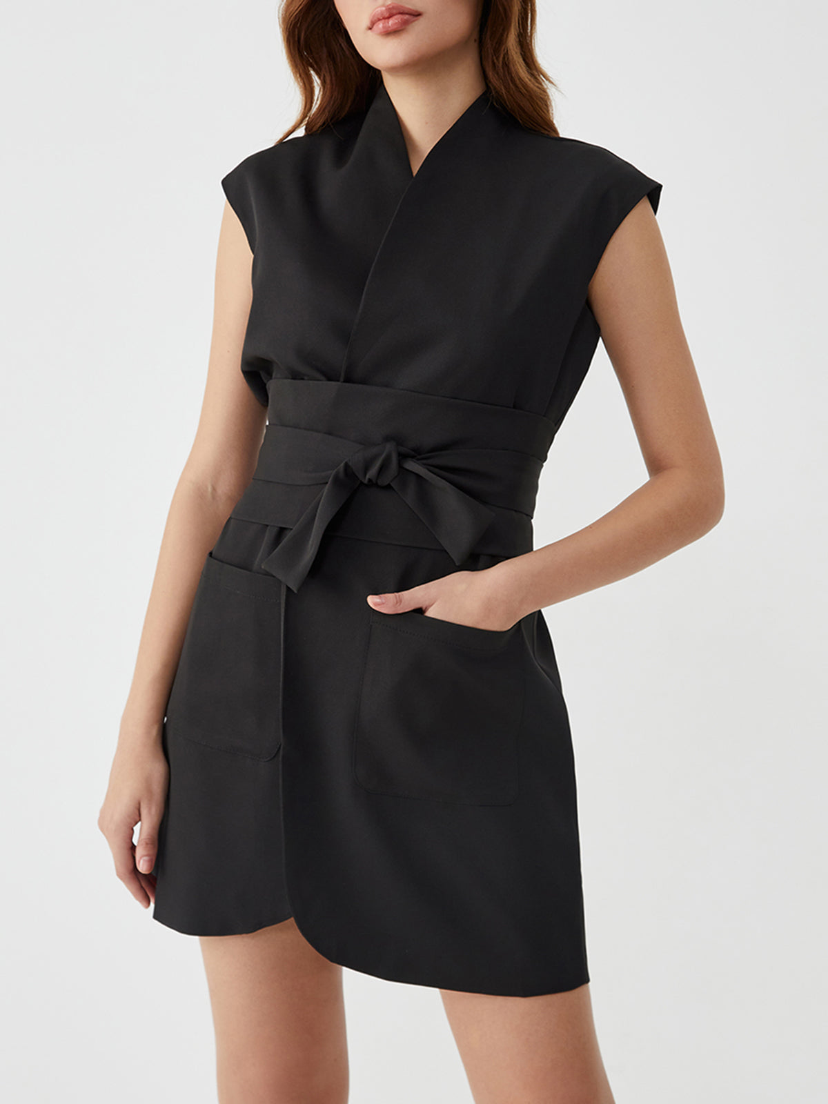 Anvelop Kolsuz Kuşaklı Kısa Elbise