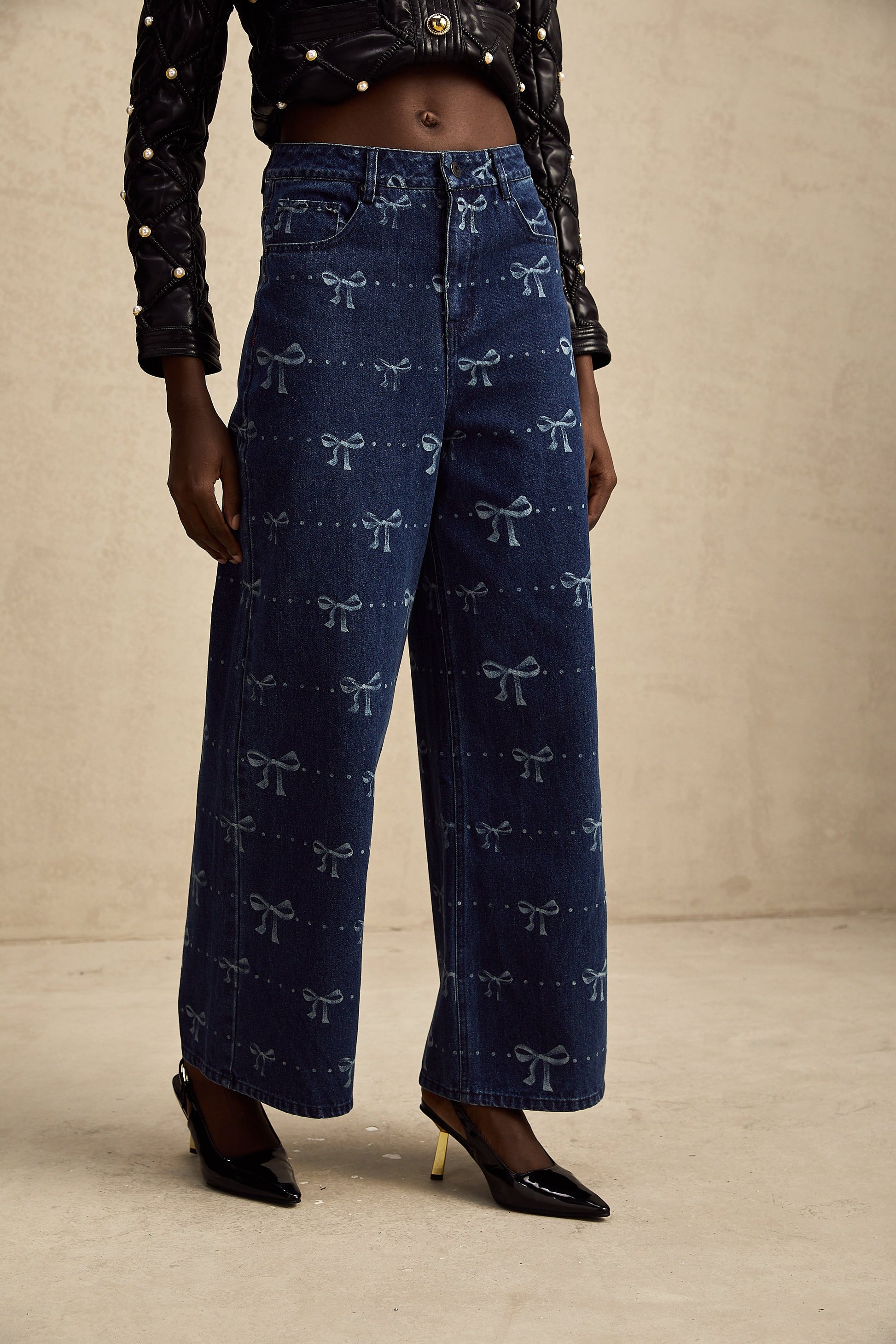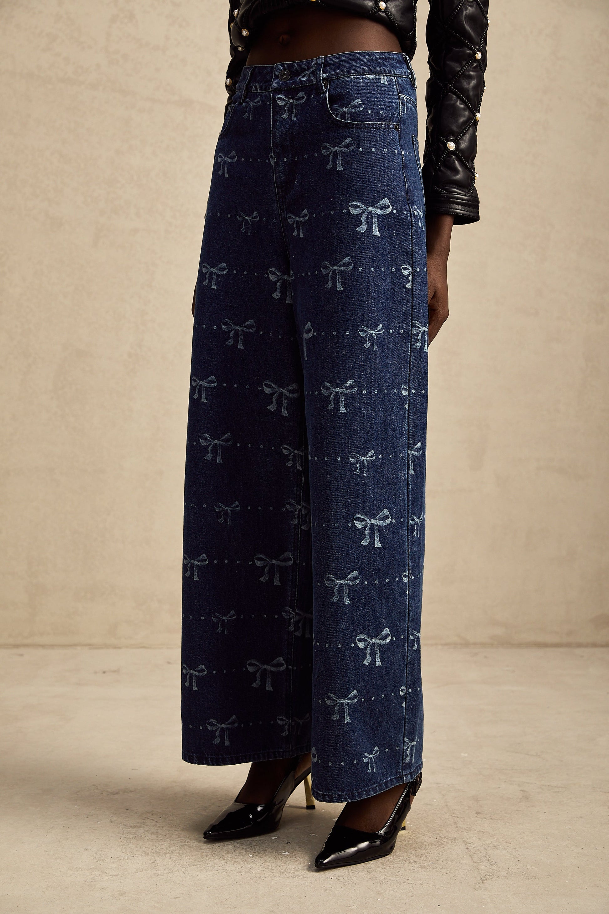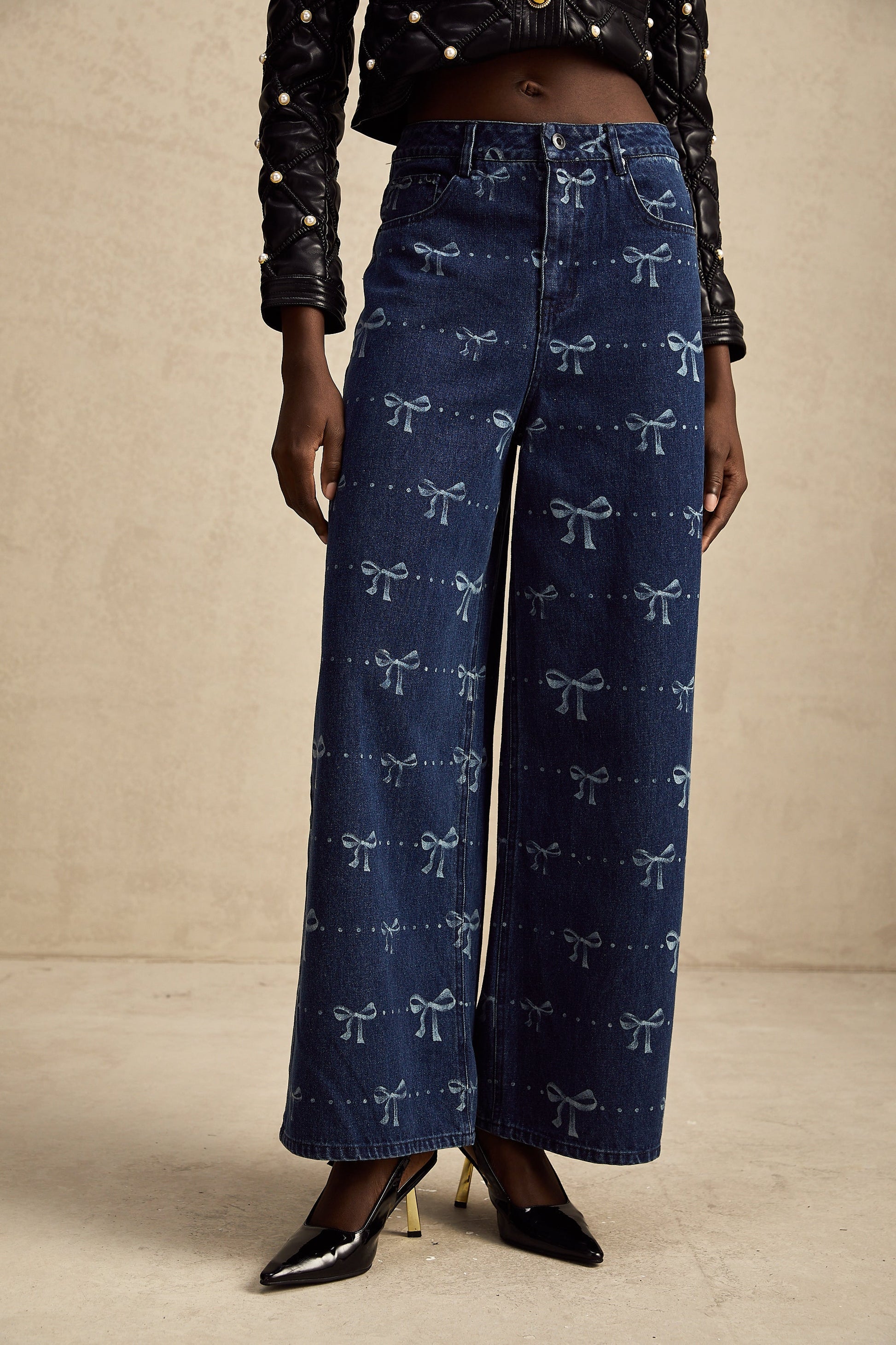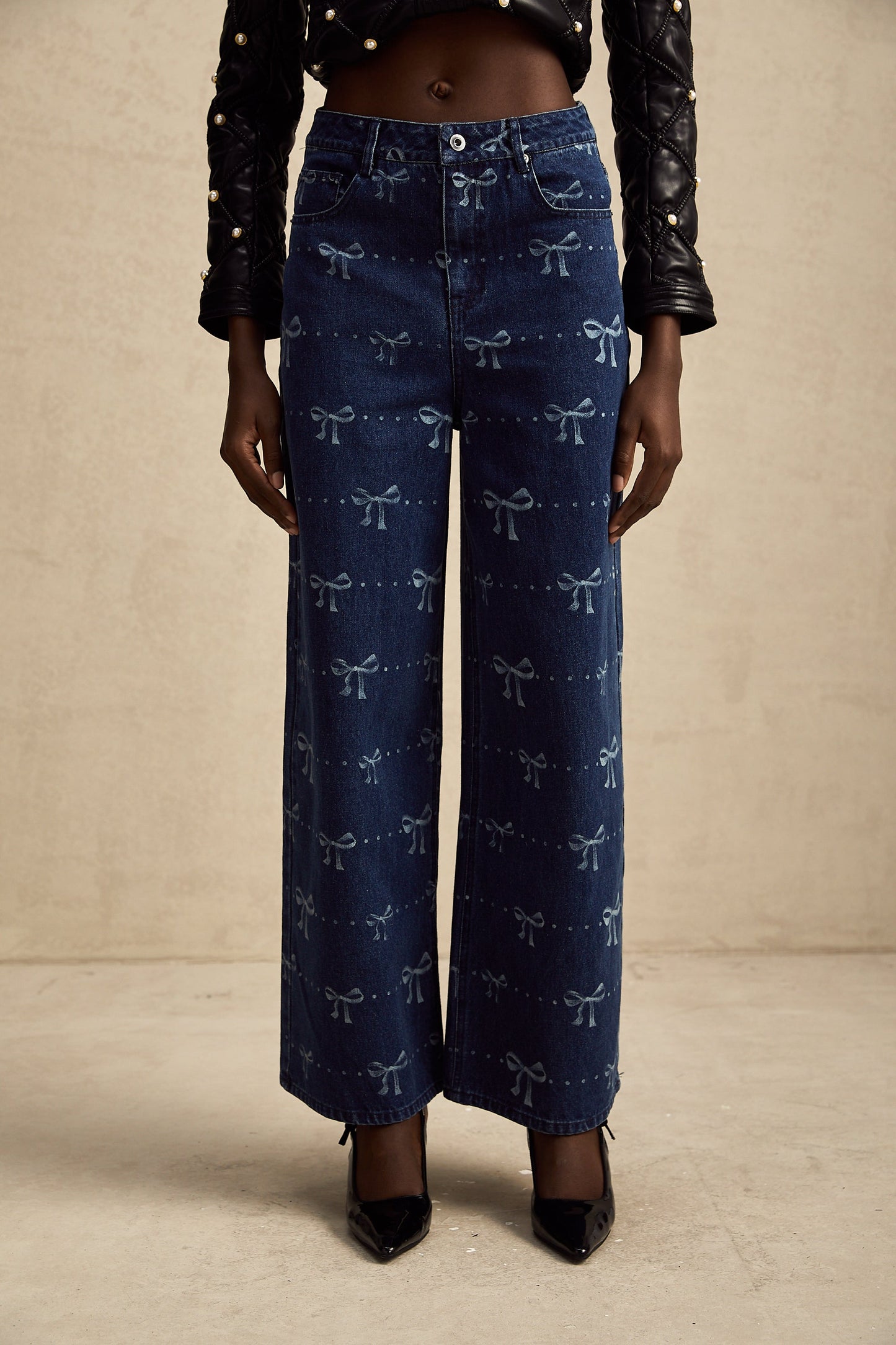 Yvonne Fiyonk Motifli Geniş Paça Jean Pantolon