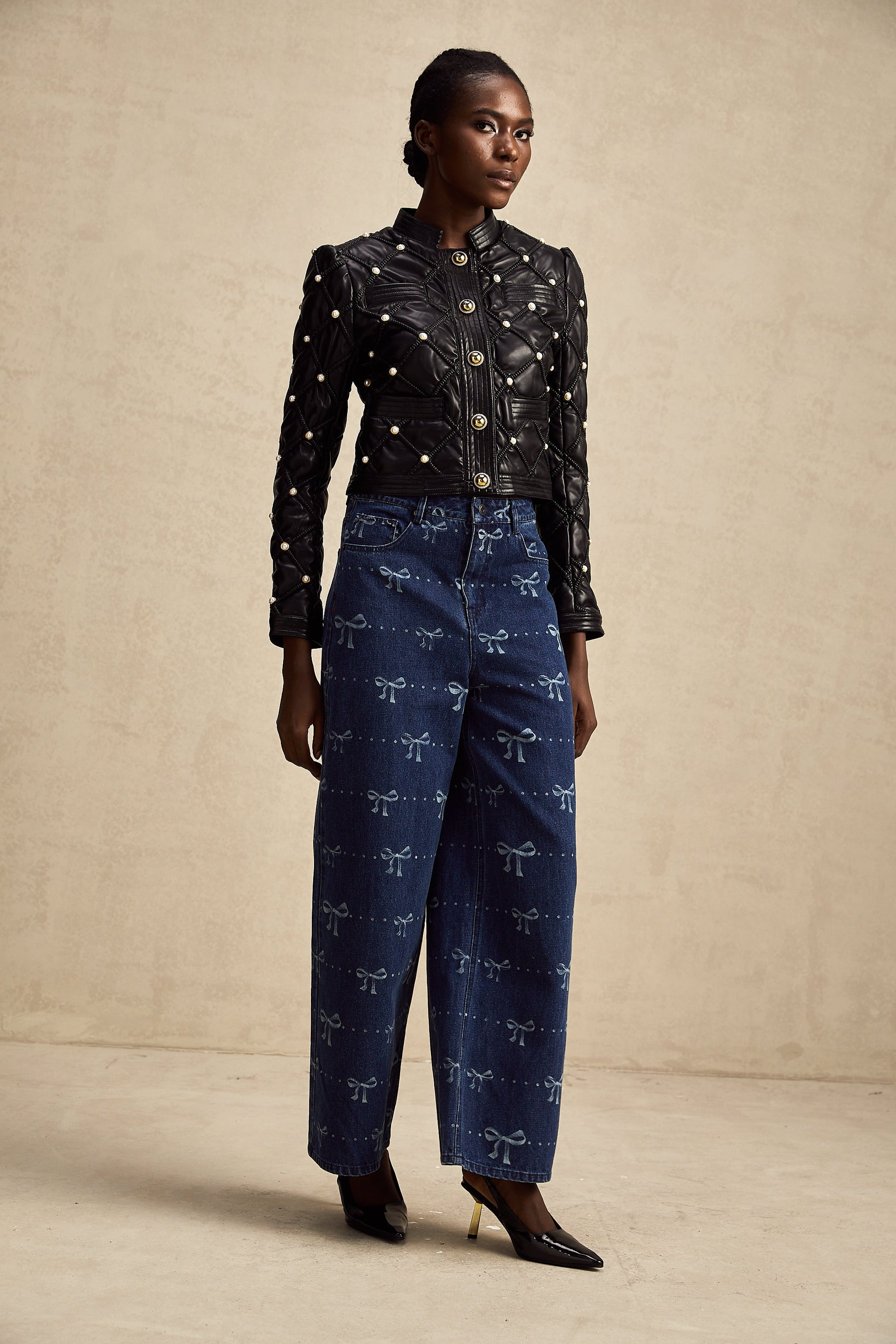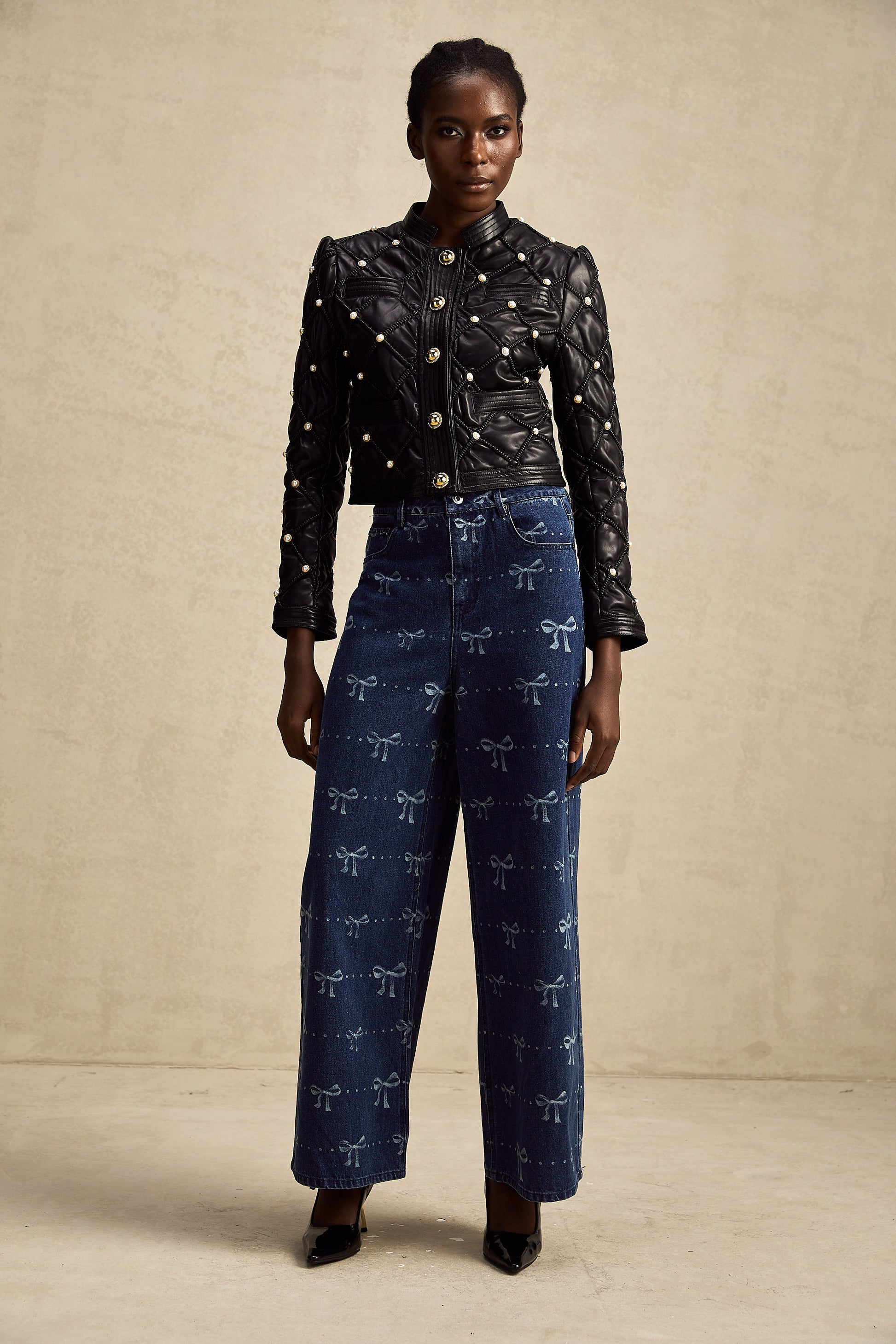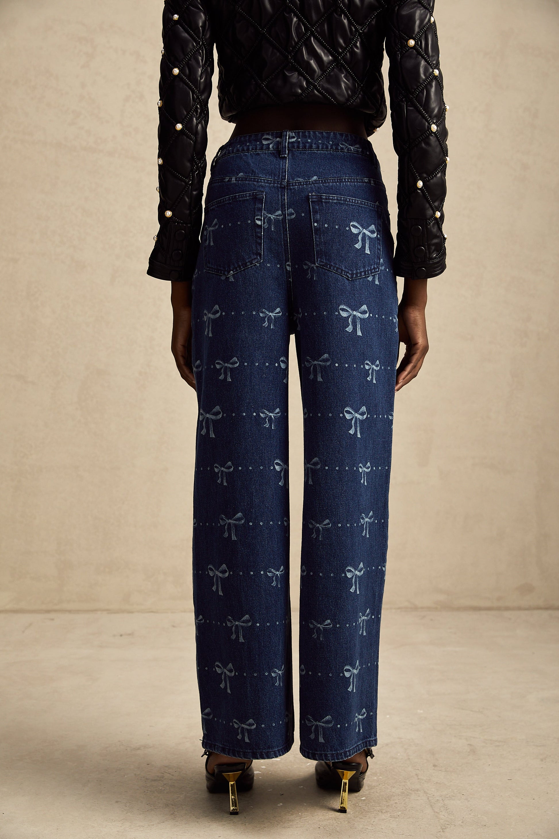 Yvonne Fiyonk Motifli Geniş Paça Jean Pantolon