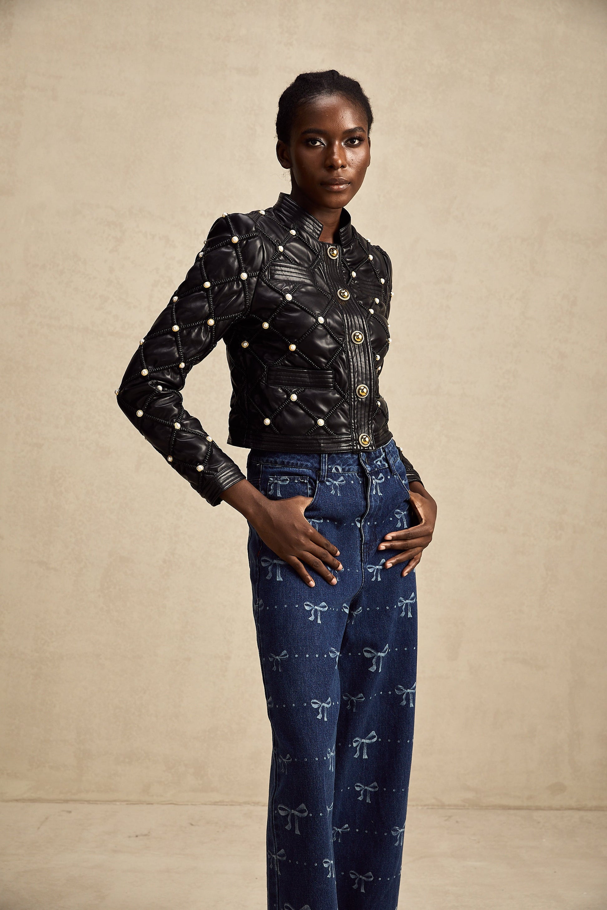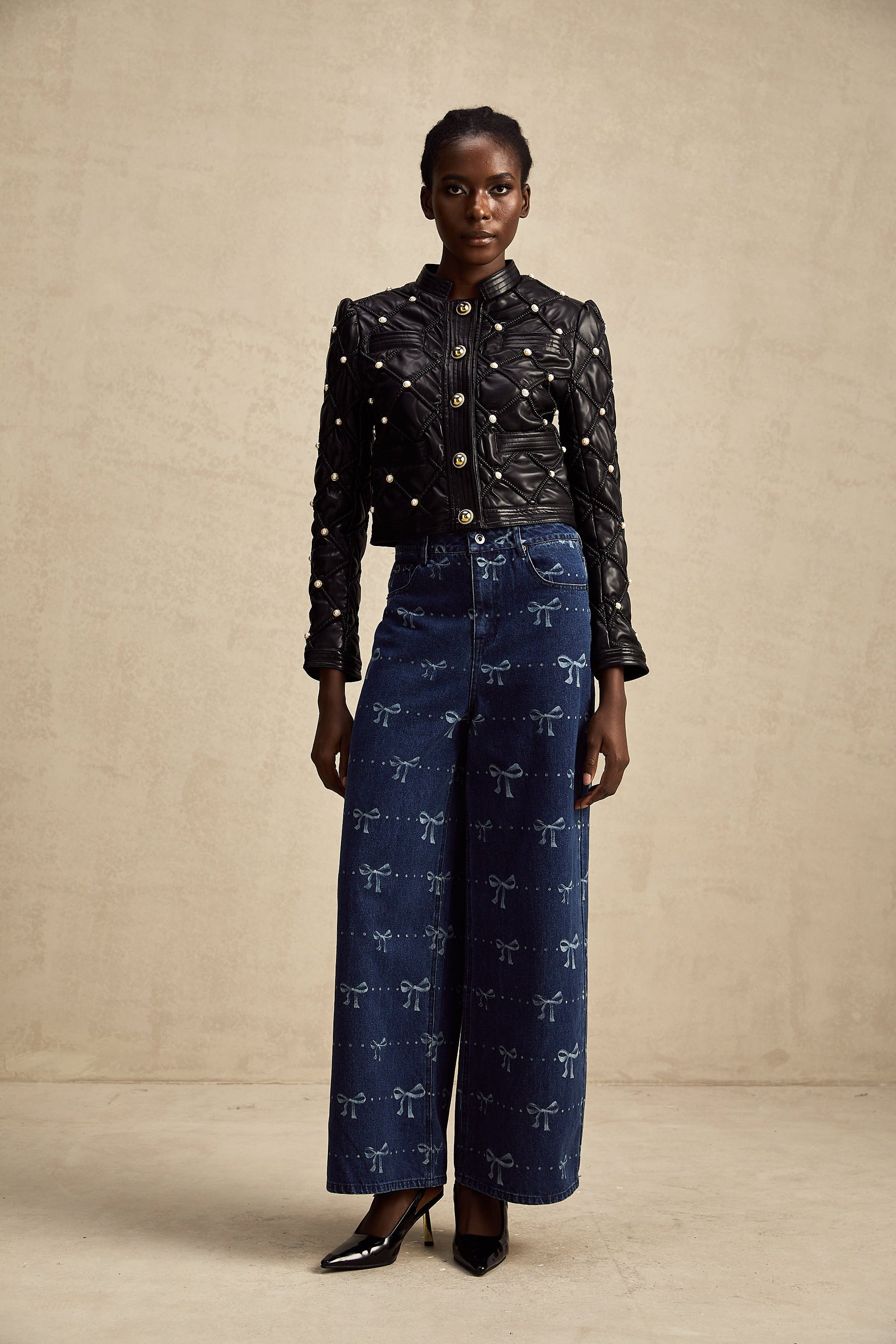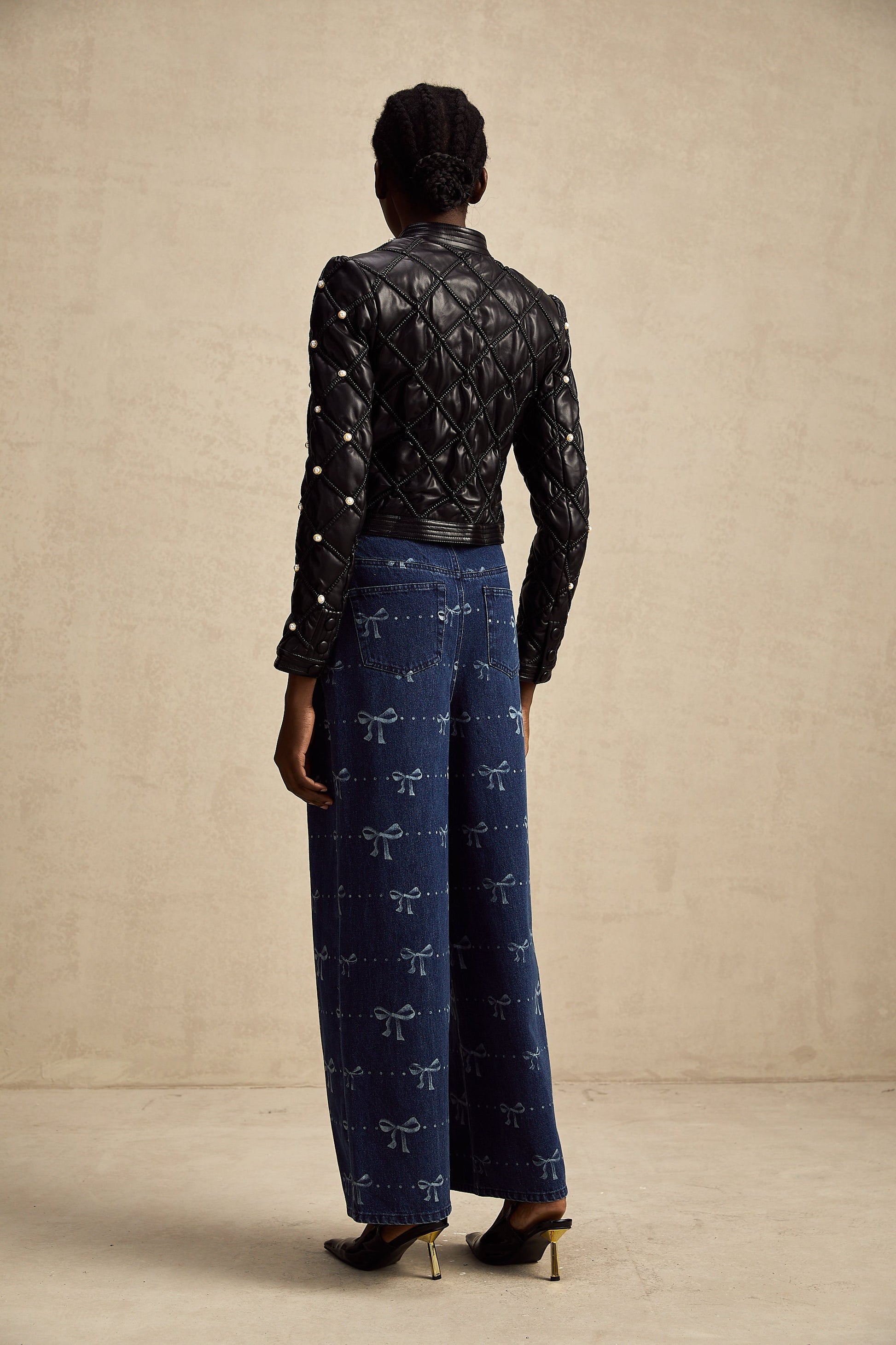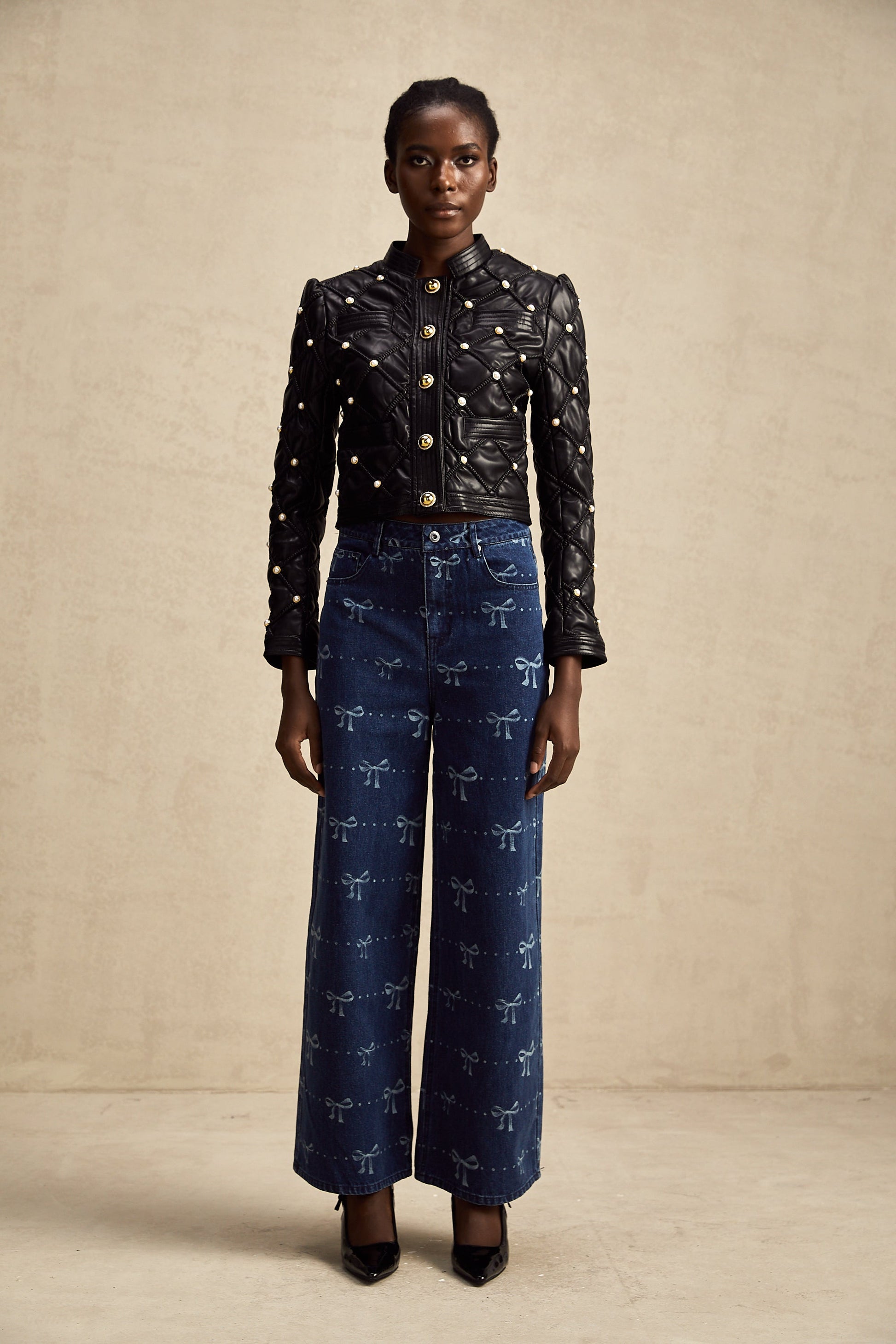 Yvonne Fiyonk Motifli Geniş Paça Jean Pantolon